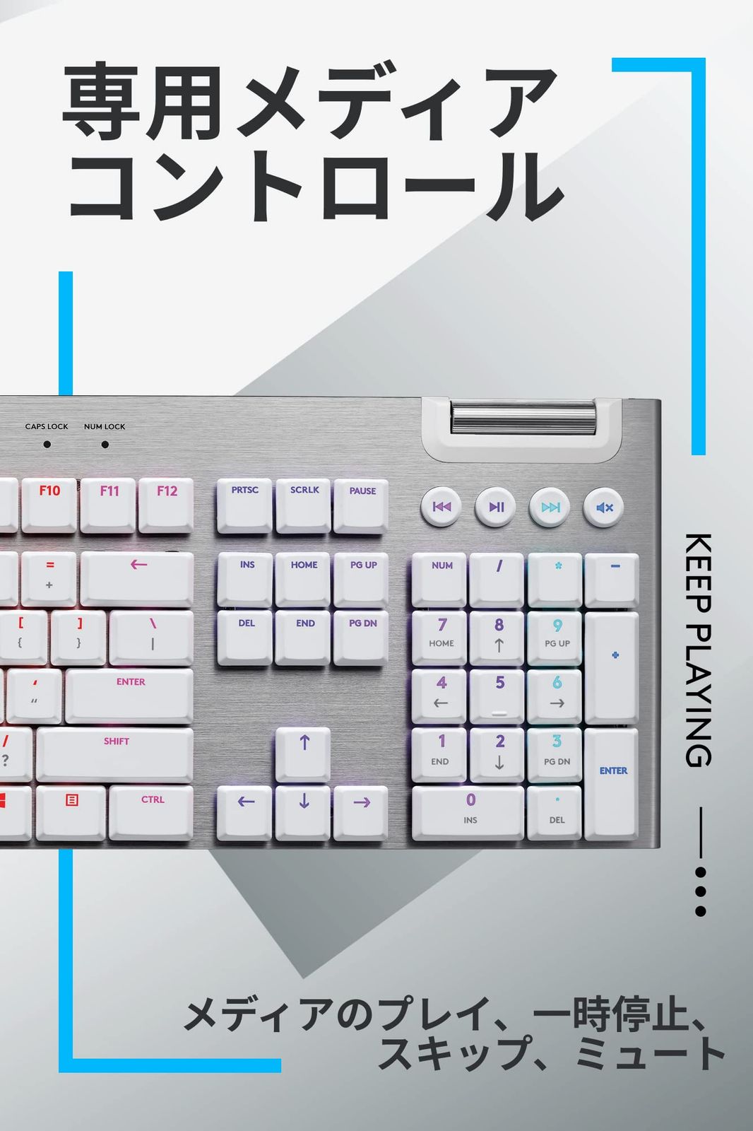 メルカリShops~SORA~をご覧いただきありがとうございます。 全国一律送料無料でお届けいたします。 以下商品説明となります。 ============ 【限定】Logicool G ゲーミングキーボード G813-TCWH 有線 タクタイル 茶軸 薄型 確かな打鍵感 GLスイッチ 日本語配列 LIGHTSYNC RGB USB パススルー ゲーミング キーボード メカニカルキーボード G813 PC window mac Chrome ホワイト 国内正規品 【 ファイナルファンタジー XIV 推奨モデル 】 高い耐久性とわずか22mmの超薄型のデザインを実現/フルサイズの超薄型有線ゲーミングキーボード「G813」 「G813-TCWH」(ホワイト)は保証期間1年間の限定モデル ※限定 壁紙ダウンロード付き 航空機にも使用される堅牢な5052アルミニウム合金をトップケースに採用/滑らかで薄いデザイン GLメカニカル スイッチ搭載/優しい打鍵感と適度な打鍵感のGLタクタイルスイッチを採用 軽いタッチでも高速入力ができるよう、アクチュエーションポイント*を1.5mmにデザイン/長時間使っても疲れにくく、激しいゲームプレイ中でもキーボードが滑りにくい ※アクチュエーションポイント:スイッチが反応する深さ 5個のGキーとメディアコントロールボタン/Logicool G HUB*を用いて、コマンドやショートカットキーを登録可能/本体左上の3つのプロファイルキーごとに設定を保存できるので、アプリごとの割り当ても可能 *Logicool G HUBはLogicool Gが提供する無料のソフトウェアです。 次世代RGBライティング LIGHTSYNCテクノロジー搭載/約1680万色のライティングやゲーム内アクションとの連動し、より高いレベルでのゲーミング体験を演出/Logicool G HUB*で、ゲームに使うキーだけを色分けしたりオリジナルのライトエフェクトを設定することも可能 Logicool Gより高い耐久性とわずか22mmの超薄型のデザインを実現したフルサイズの超薄型有線ゲーミングキーボードが登場。 航空機にも使用される堅牢な5052アルミニウム合金をトップケースに採用したこのモデルは優しい打鍵感による適度な打鍵感のGLタクタイルスイッチを採用しています。 「G813-TCWH」(ホワイト)は保証期間1年間の限定モデルです。 ■耐久性と使いやすさを考慮した薄型デザイン 航空機にも使用される堅牢な5052アルミニウム合金をトップケースに採用し、滑らかで薄いデザインに仕上げました。また軽いタッチでも高速入力ができるよう、アクチュエーションポイント*を1.5mmにデザイン。長時間使っても疲れにくく、激しいゲームプレイ中でもキーボードが滑りにくくなっています。 *アクチュエーションポイント:スイッチか反応する深さ ■5個のGキーとメディアコントロールボタン 本体左に縦に並ぶ5個のGキーは、Logicool G HUB*を用いて、コマンドやショートカットキーを登録できます。本体左上の3つのプロファイルキーごとに設定を保存できるので、アプリごとの割り当ても可能です。また音の再生/停止や音量調整は、本体右上に配置されているメディアコントロールボタンとスクロールホイールで操作できます。 *Logicool G HUB*はLogicool Gが提供する無料のソフトウェアです。Logicool Gオフィシャルホームページから無料でダウンロードできます。 ■次世代RGBライティング LIGHTSYNCテクノロジー搭載 キーボードのライトは約1680万色の個別設定や、ゲーム内アクションとの連動も可能。より高いレベルでのゲーミング体験を演出します。Logicool G HUB*を使えば、ゲームに使うキーだけを色分けしたりオリジナルのライトエフェクトを設定することも可能です。 【本体サイズ(幅×奥行×高さ)】 47.5cm x 14.95cm x 2.2cm