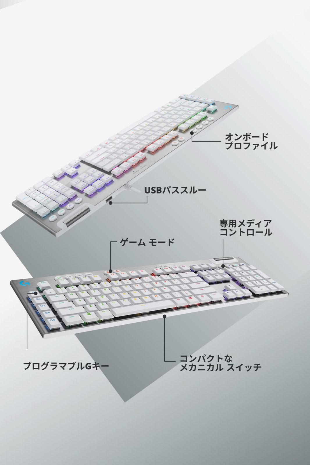★即日発送★【限定】Logicool G ゲーミングキーボード G813-TCWH 有線 タクタイル 茶軸 薄型 確かな打鍵感 GLスイッチ 日本語配列 LIGHTSYNC RGB USB パススルー ゲーミング キーボード メカニカルキーボード G813 P