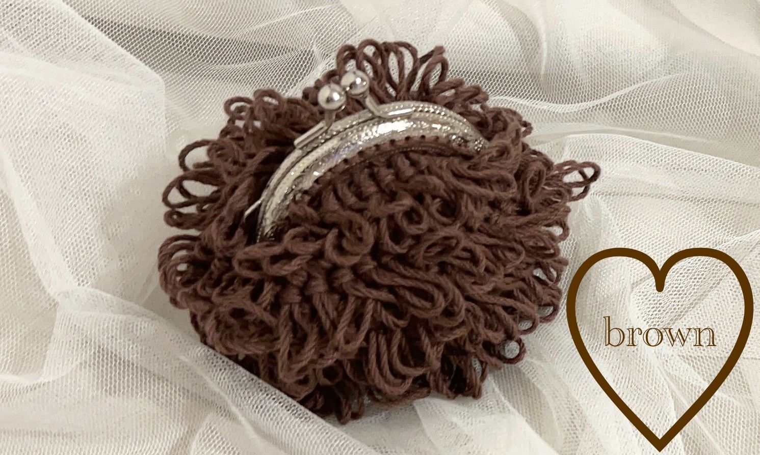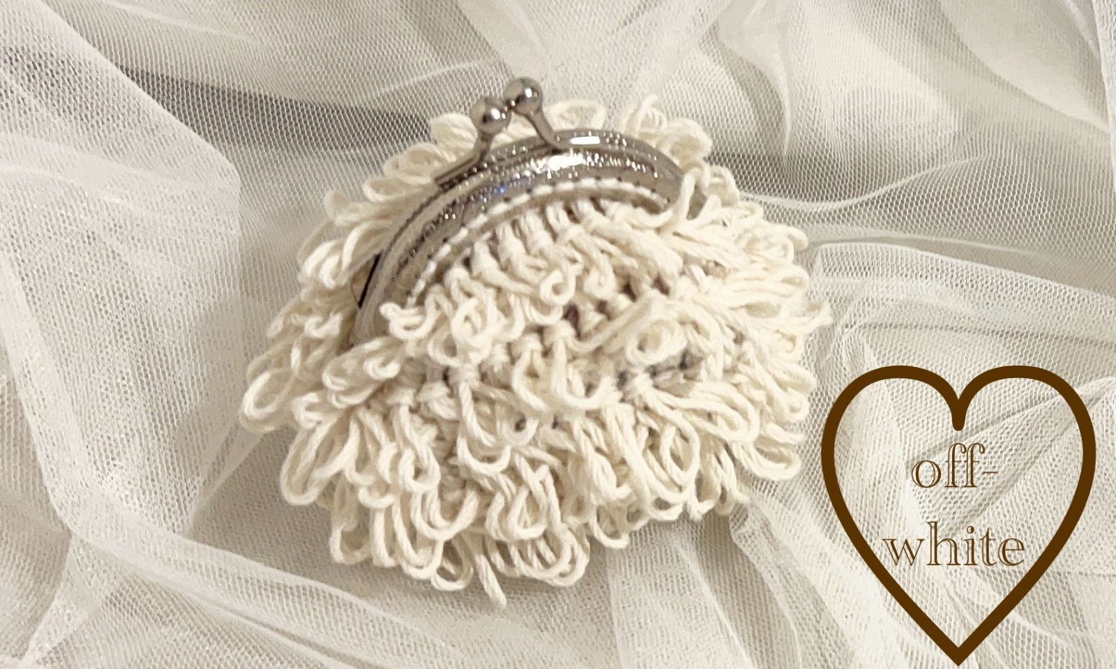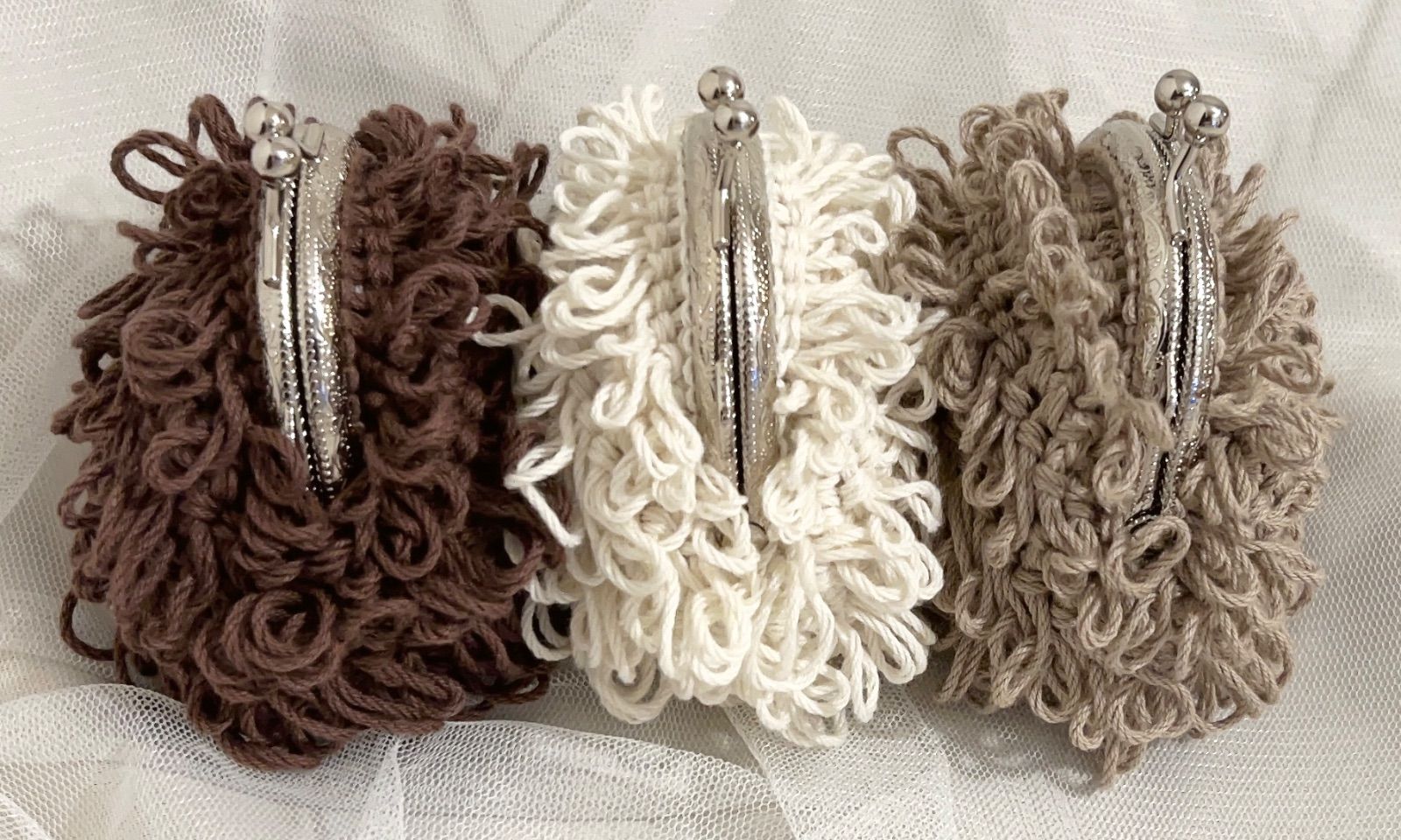 ハンドメイド 編み物 かぎ編み もけもけがま口ポーチS