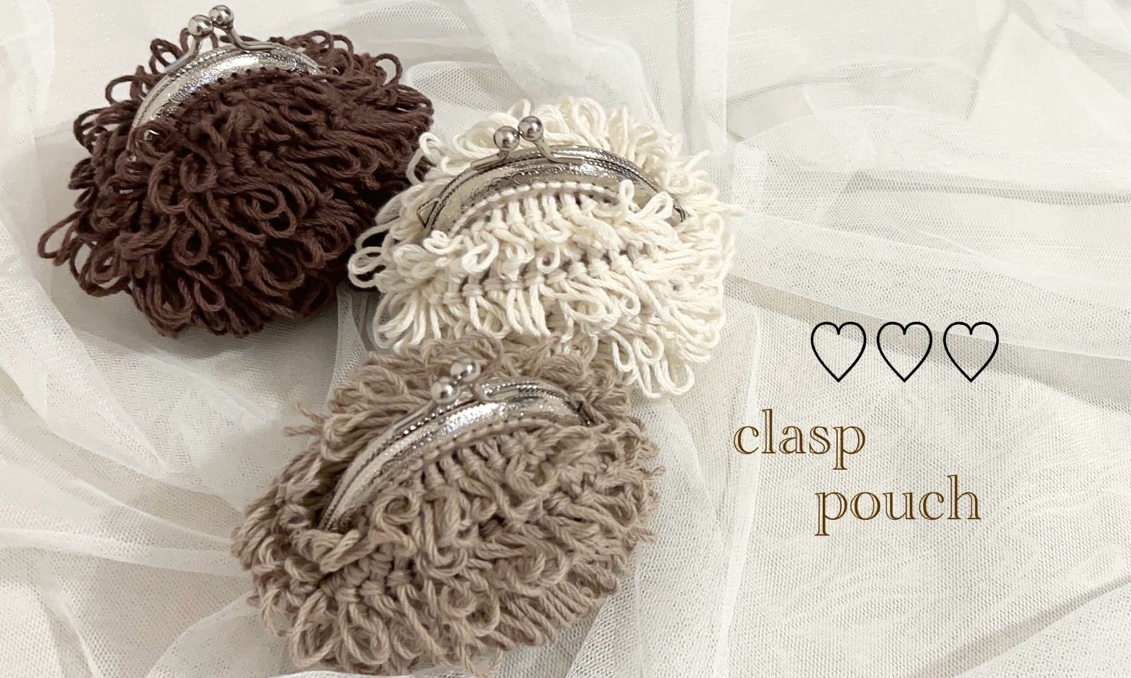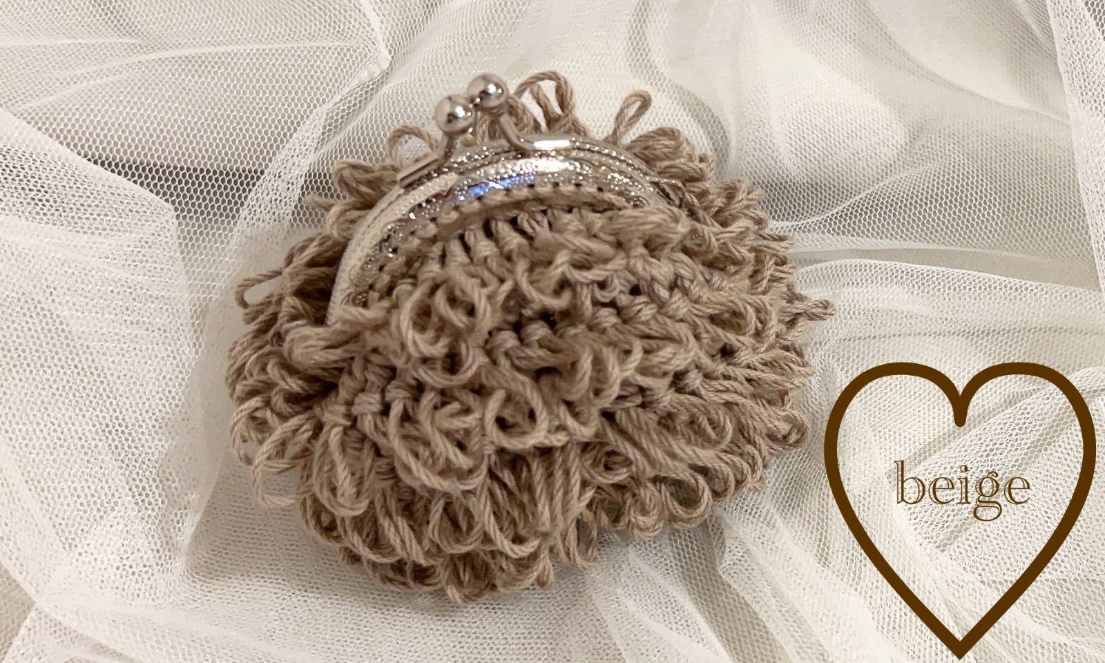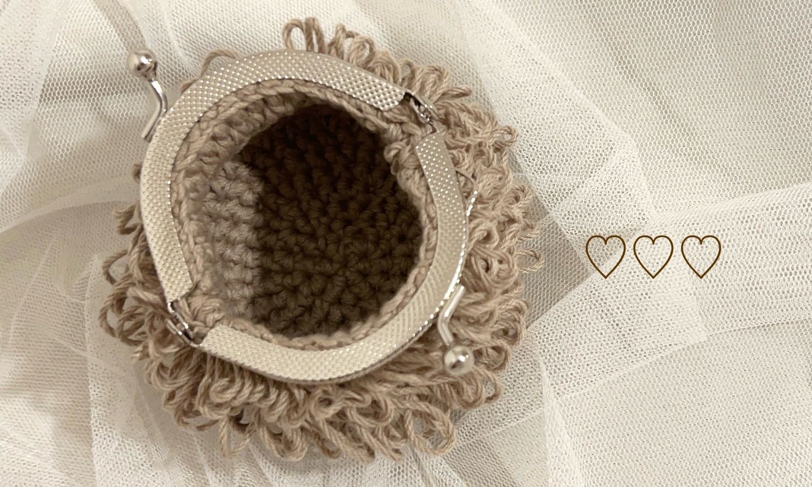 ハンドメイド 編み物 かぎ編み もけもけがま口ポーチS
