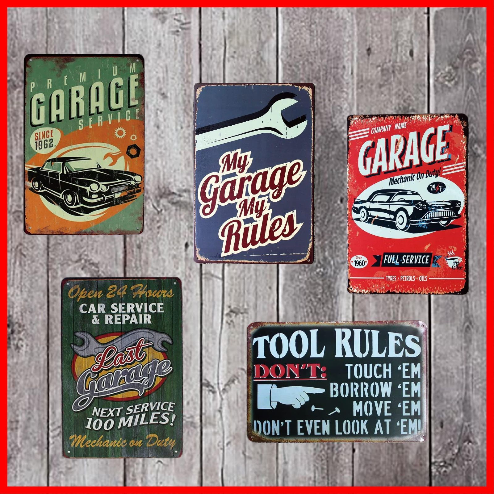 Lanx. ブリキ 看板 シンプルガレージ 5枚セット メタルプレート アメリカン ヴィンテージ風 壁飾 レトロ 雑貨飾り メタル 雑貨 壁飾り アンティーク ビンテージ (シンプルガレージ)