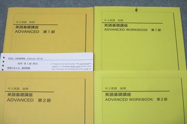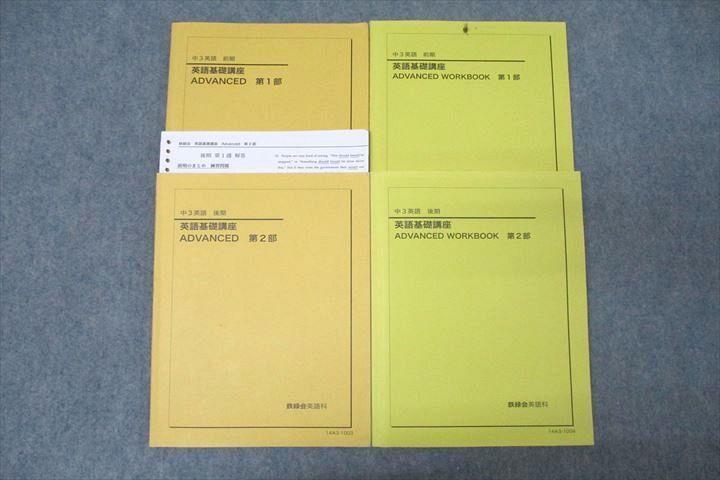 鉄緑会 中3 英語基礎講座 ADVANCED/WORKBOOK 第1/2部 テキスト通年セット 2014 計4冊