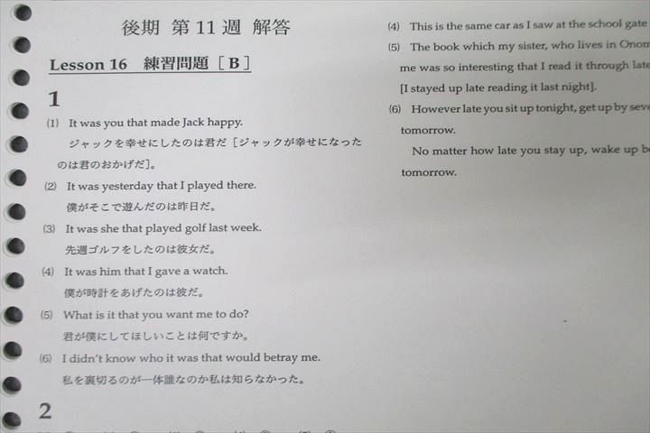 ADVANCED 第2部は解答・訳プリントが全講分あります。