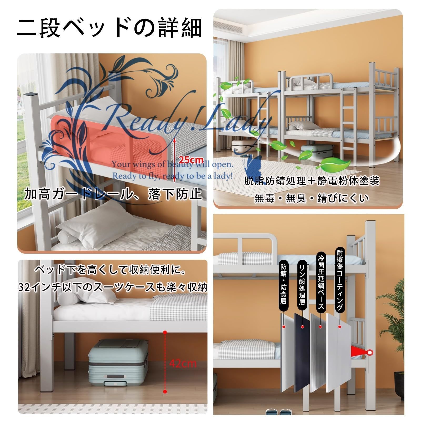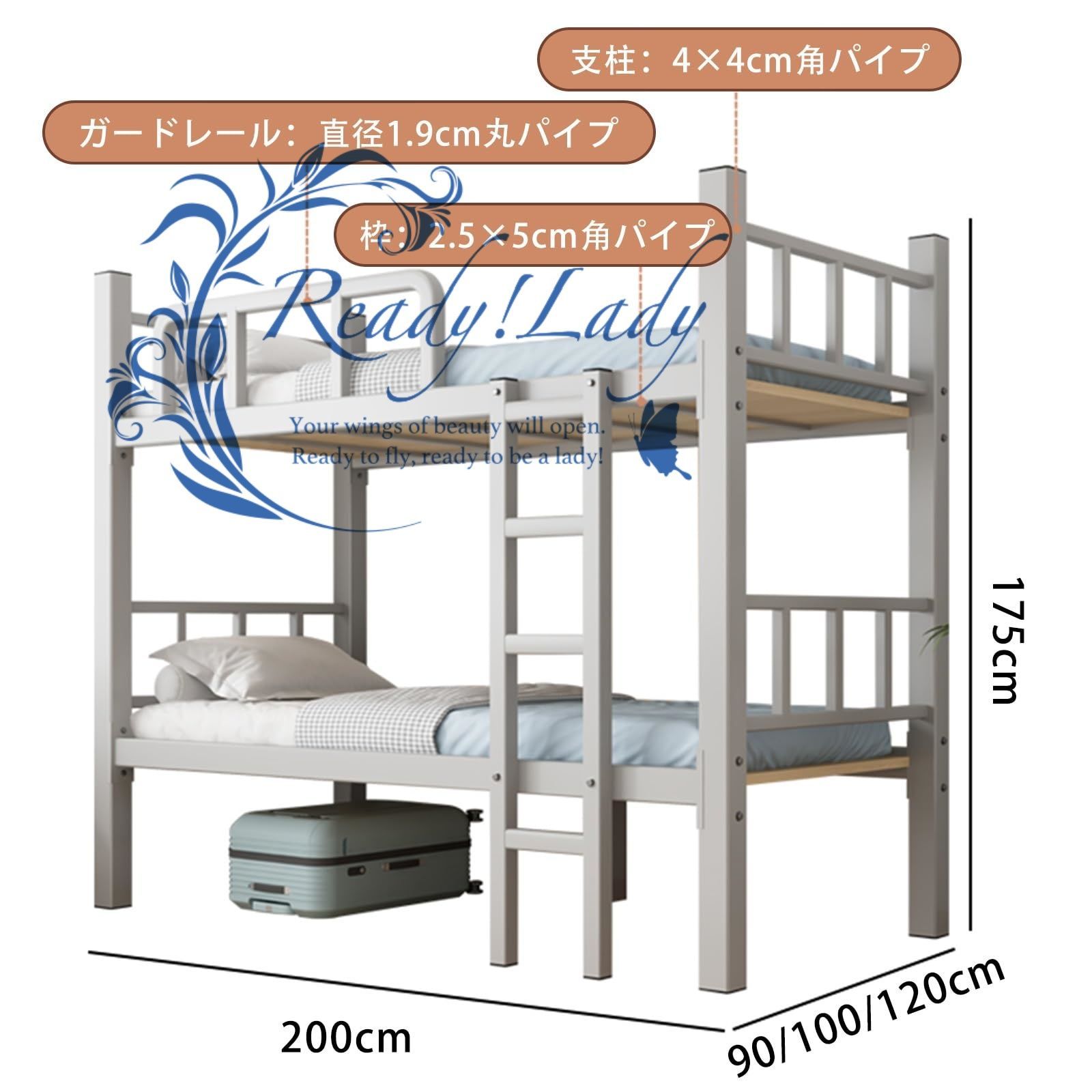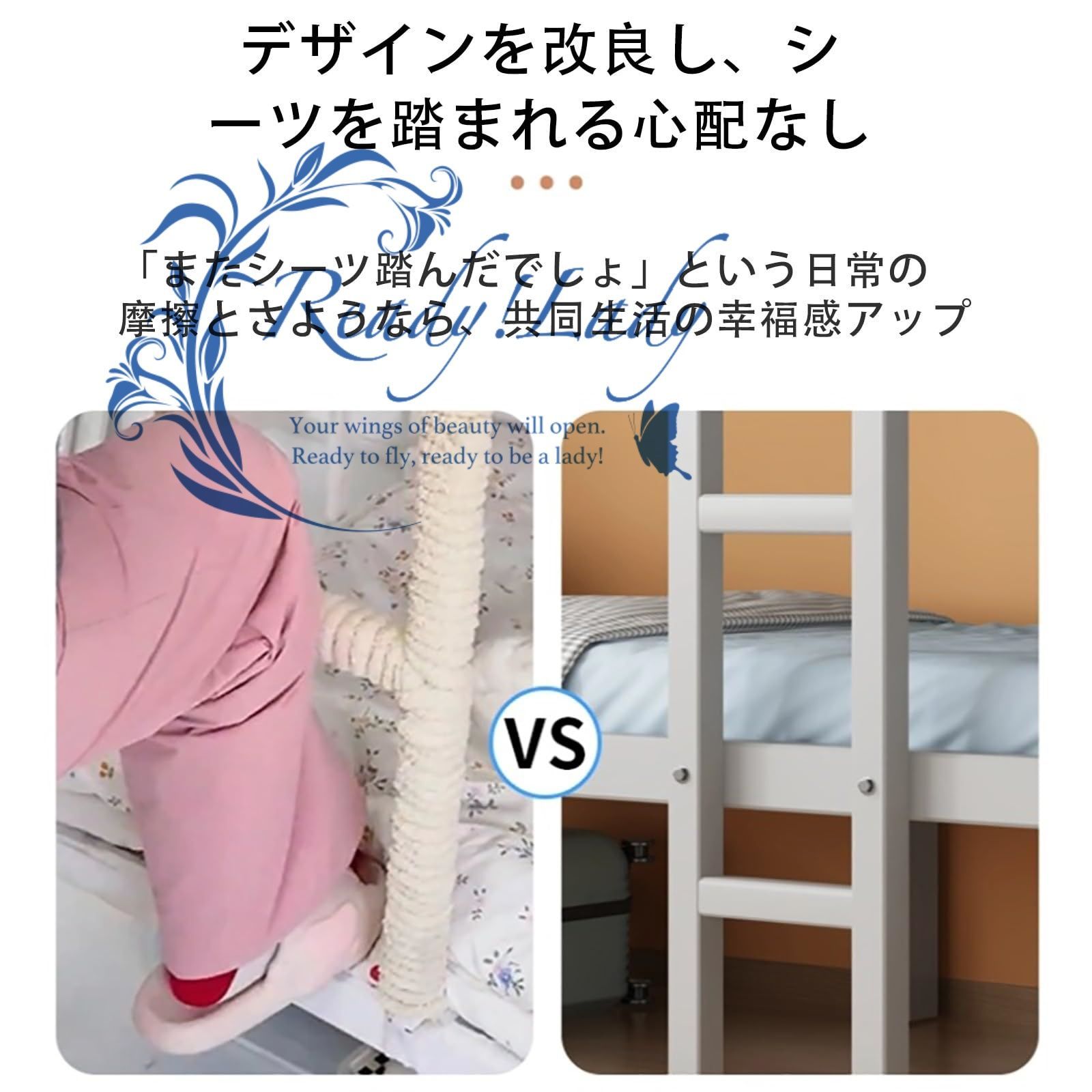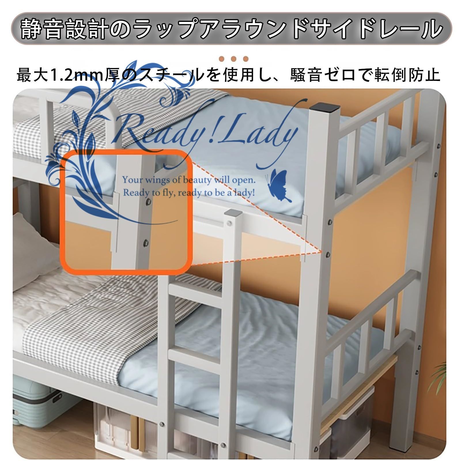 【一体型はしご】ロフトベッドに一体化されたはしごは、スペースを節約し、できるだけ小さなスペースを取り、限られたスペースを最大限に活用するように設計されています。ベッドフレーム自体の一部としても機能し、ロフトベッドの安定性をさらに高めます。