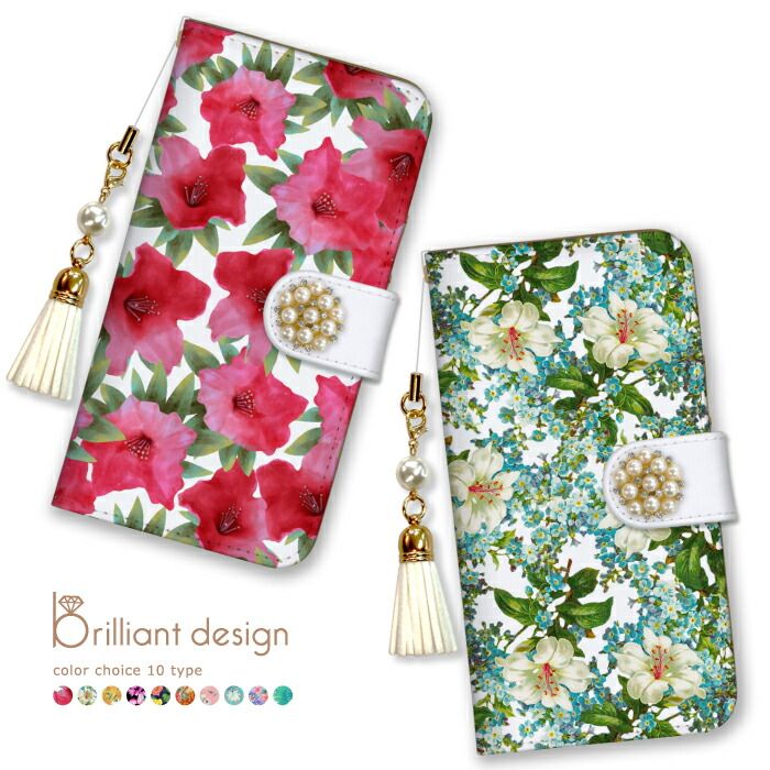 AQUOS zero2 SH-01M SHV47 SH-M13 ケース 手帳型 アクオスゼロ2 スマホケース ビジュー パール デコ ストラップ付 おしゃれ 花柄 フラワー お花 上品 ブランド ハイビスカス 百合 ヒマワリ カラー07