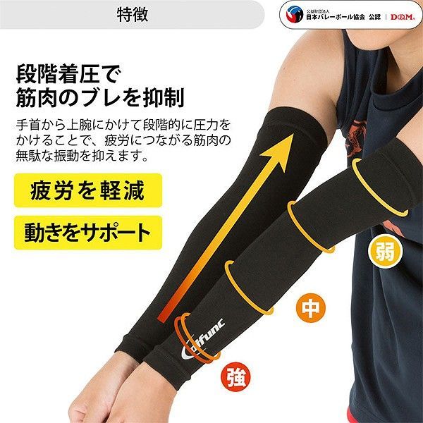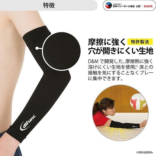 【新品未使用】種類2:ブラック/M(24-28cm) D&M サポーター バレーボール用アームスリーブ 大人 腕用 1ペア入り(両腕用) アームカバー アームガード 公益財団法人日本バレーボール協会公認 日本製 うで ウデ D7000