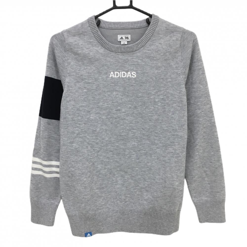 【美品】アディダス セーター 杢グレー×ネイビー ニット ウール混 レディース L/G ゴルフウェア adidas