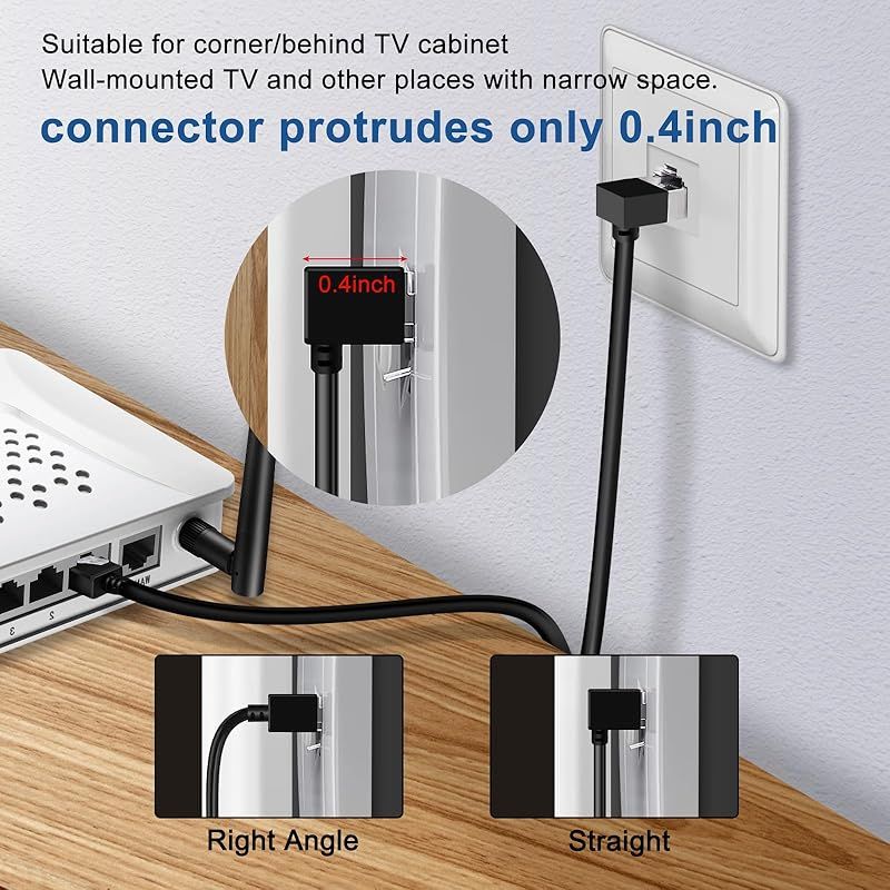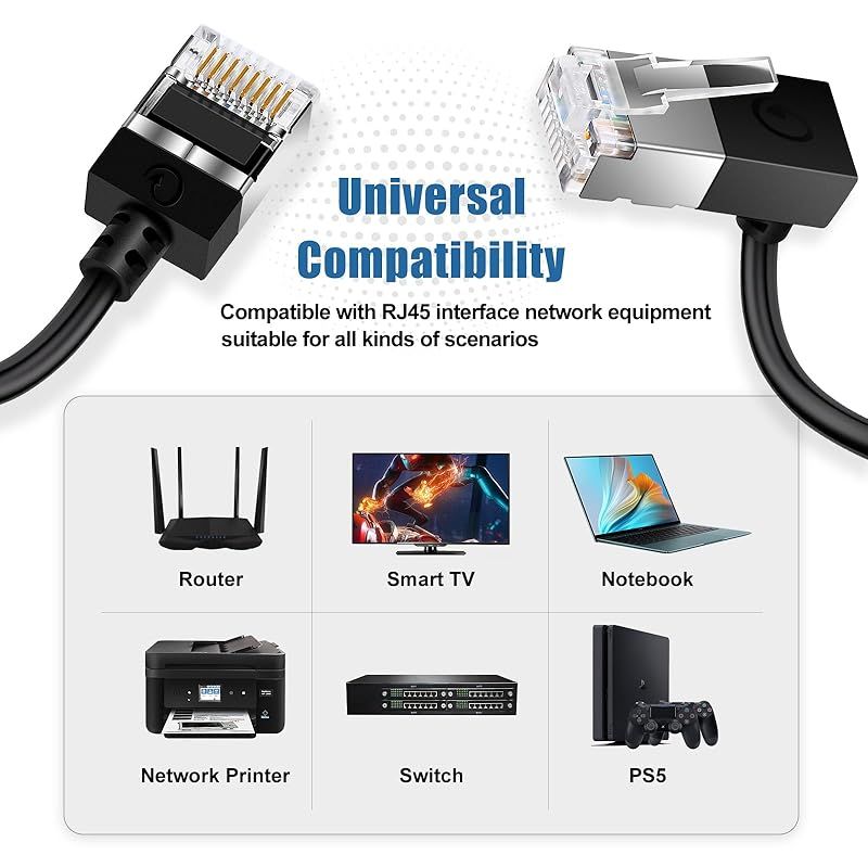 【Cat6イーサネットケーブル90°下向き】Dutevolns Cat6a 90°下向きアングルケーブルは、コンパクトで狭いスペースでの使用に適しています。ノートパソコンにぴったりフィットし、家具の後ろのネットワーク壁パネルに接続して、ケーブルの曲がりを効果的に防ぎ、寿命を延ばします。