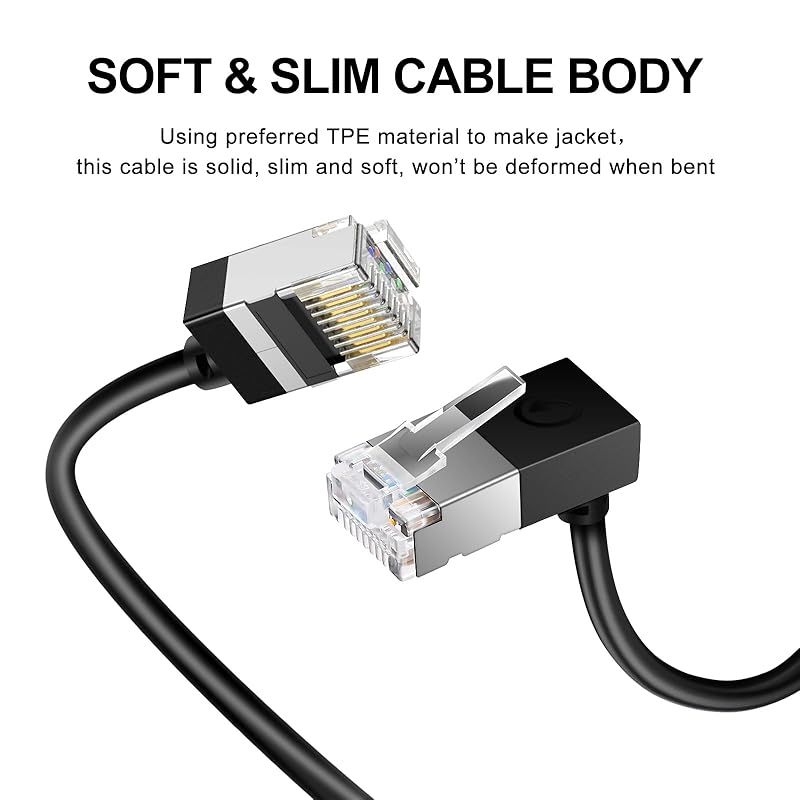 Dutevolnsのスリムネットワークパッチケーブルは、標準的なCat6ネットワークケーブルの利点をすべて備えていますが、直径はかなり小さくなっています。 高密度のケーブル設置では、ケーブルがよりきれいで整理された外観を作り出し、その薄型サイズは、ネットワークキャビネット内の機器への空気の循環を促進するのに役立ちます。 ケーブルのサイズが縮小されているため、柔軟性が向上し、コーナーや狭いスペースのケーブル配線への取り付けに最適です。