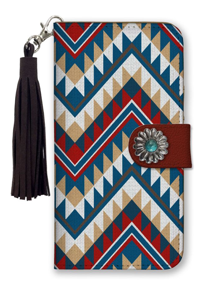 Galaxy S24 FE SCG30 ケース 手帳型 ギャラクシーS24 FE SCG30 スマホケース フリンジ ストラップ付 コンチョ ネイティブ オルテガ柄 西海岸 カジュアル ネイビー ホワイト メンズ 男性 カラー03