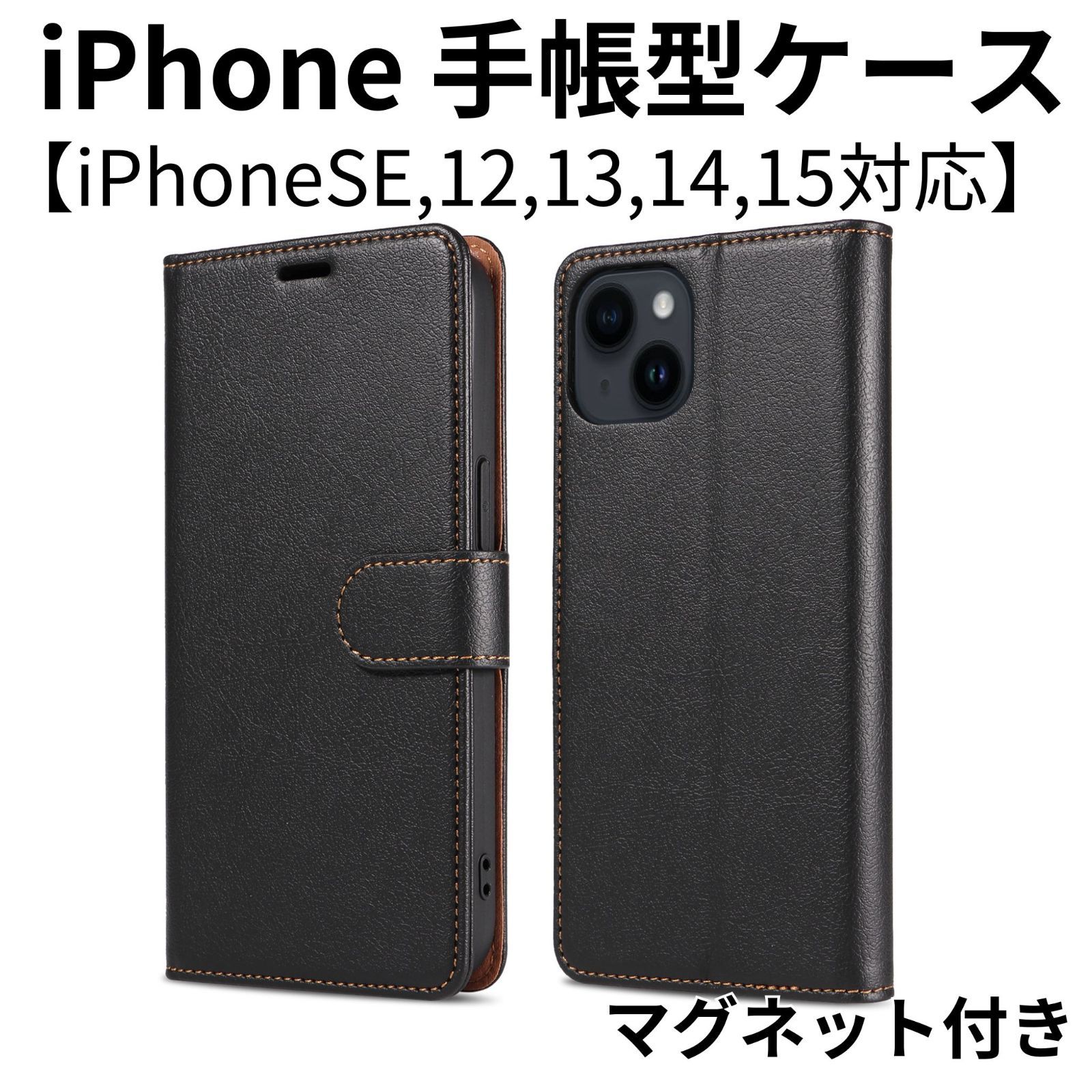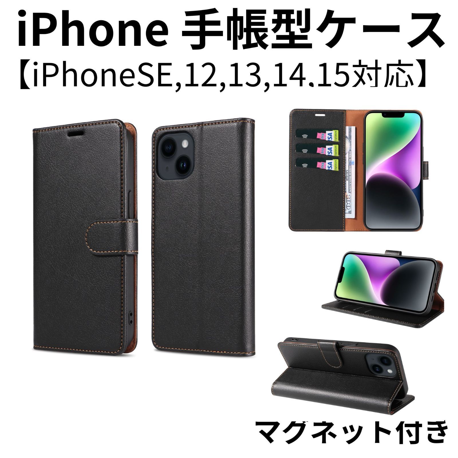 iPhone SE 12 13 14 15 手帳型 ケース ベルト マグネット付 スマホケース アイフォン ブラック 1502