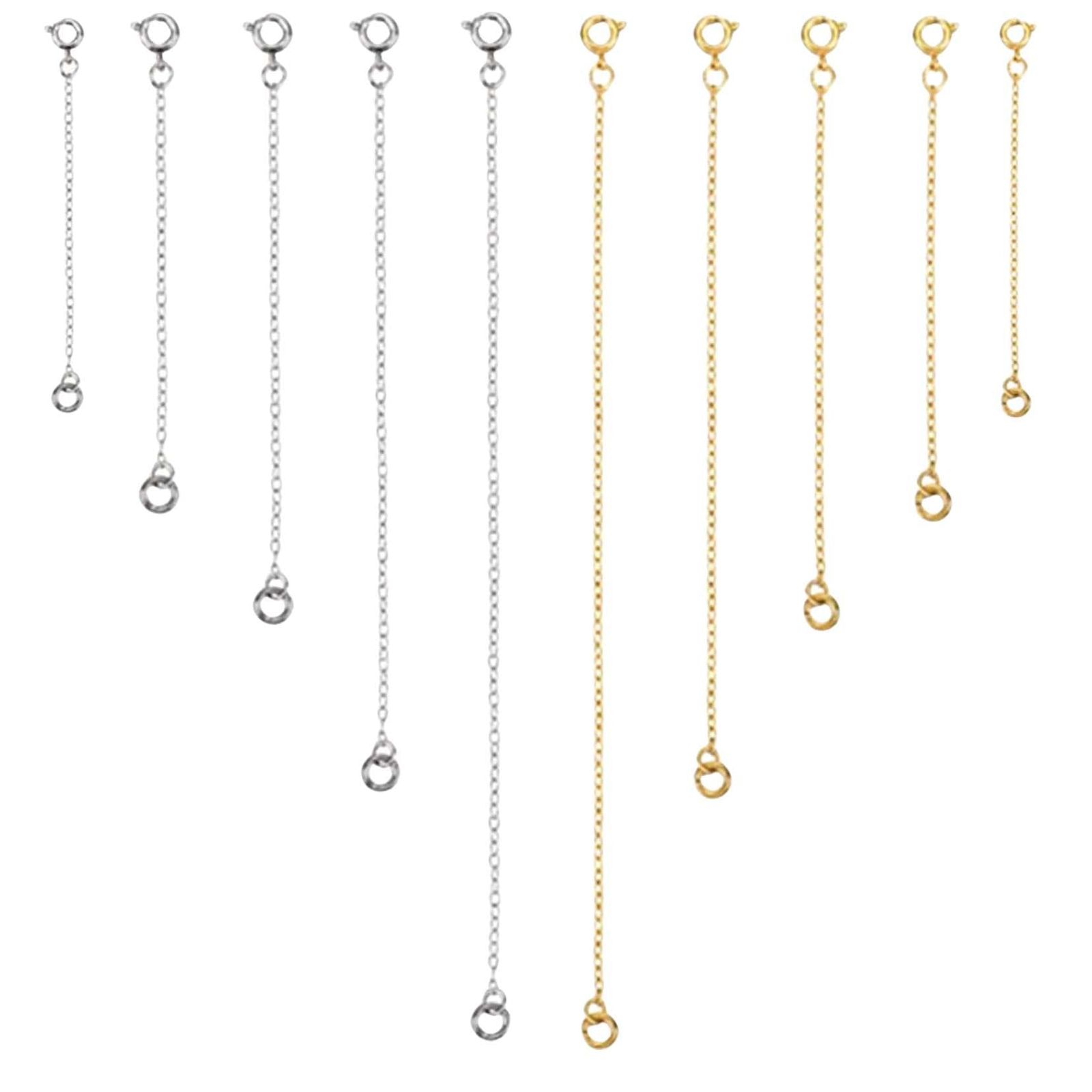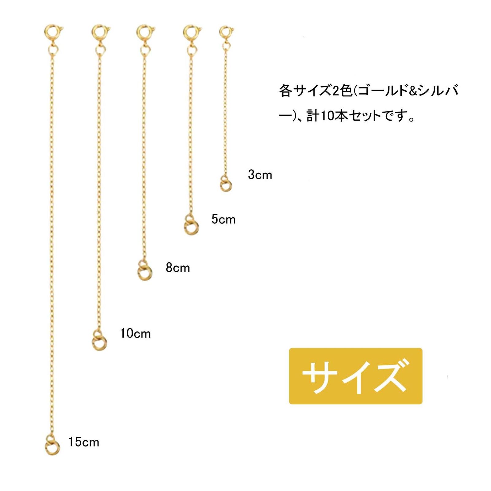 【迅速発送】延長 チェーン ネックレス アジャスター ネックレス チェーン ネックレスの長さを調整用 ステンレス製 パーツ アクセサリー DIY 3cm 5cm 8cm 10cm 15cm 10本セット (ゴールド シルバー)