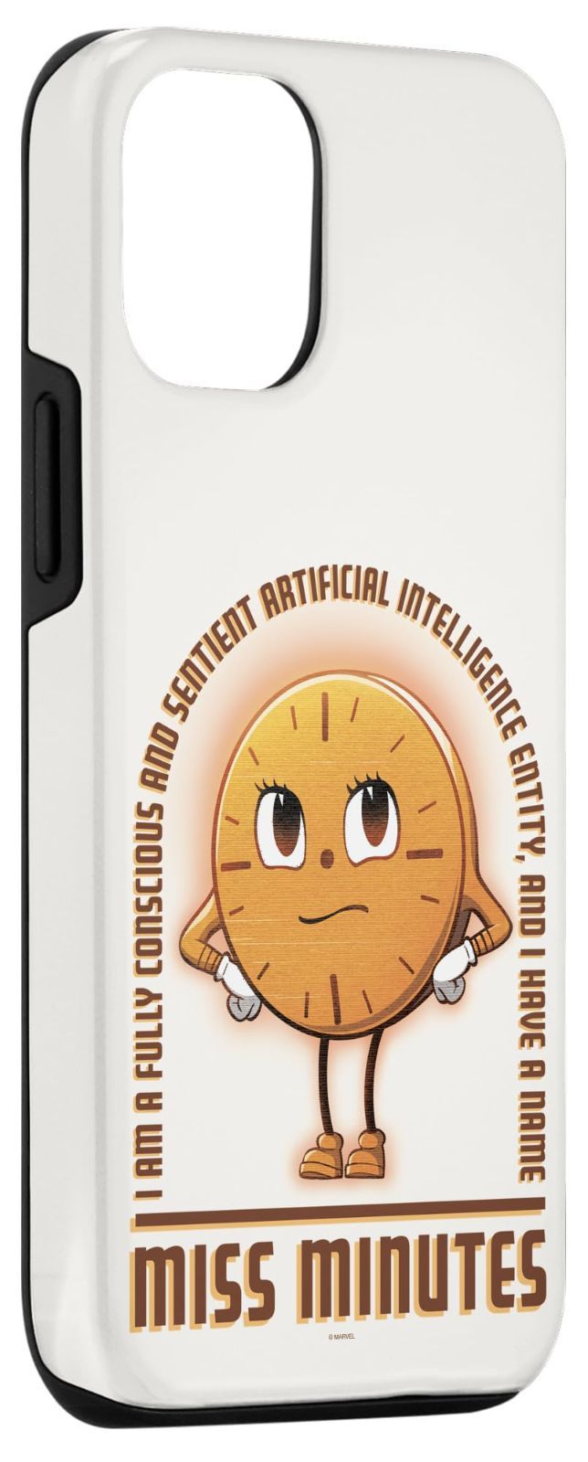 Don’t dare disrespect Miss Minutes! Protect your iPhone or Samsung cell phone with this sturdy official case from Marvel Studios’ “Loki” Season 2 on Disney+ featuring the fan-favorite talking holographic cartoon clock with a displeased expression and the quote “I am a fully conscious and sentient artificial intelligence entity and I have a name: Miss Minutes”. A great gift for a fan of Loki Miss Minutes and the Marvel Cinematic Universe (MCU)! Available for the following iPhone and Samsung models: iPhone 14 iPhone 14 Plus iPhone 14 Pro iPhone 14 Pro Max iPhone 13 iPhone 13 Pro iPhone 13 Pro Max iPhone SE (2020) iPhone 7 iPhone 8 iPhone 11 iPhone 11 Pro iPhone 11 Pro Max iPhone 12/12 Pro iPhone 12 Mini iPhone 12 Pro Max iPhone X/XS iPhone XS Max iPhone XR iPhone 7/8 iPhone 7 Plus/8 Plus Galaxy S20 Galaxy S20+ Galaxy S20 Ultra Galaxy S10 Galaxy S10+ Galaxy S10e Galaxy S9 Galaxy S9+ Galaxy S8 Galaxy S8+.