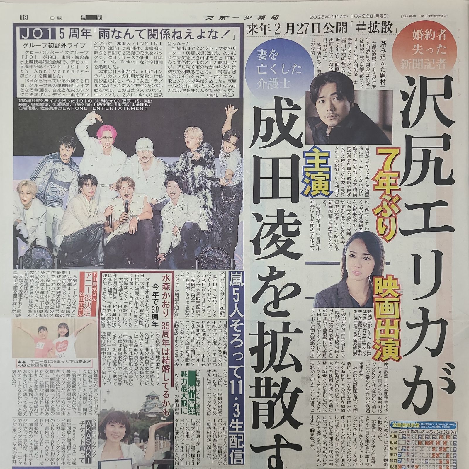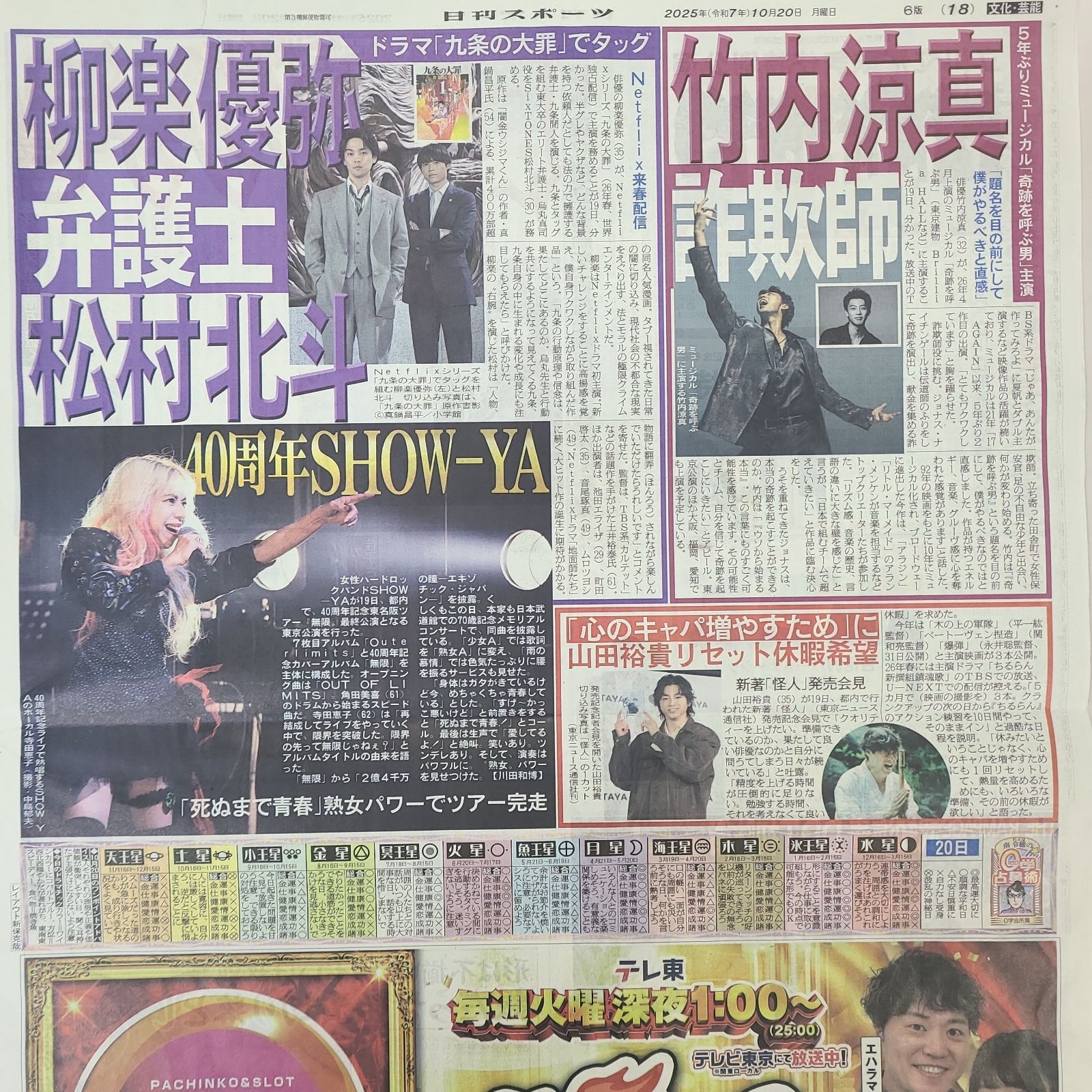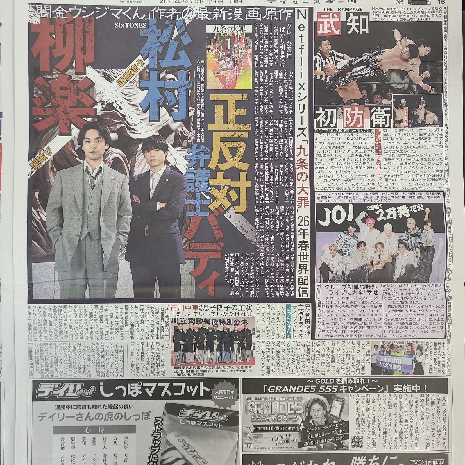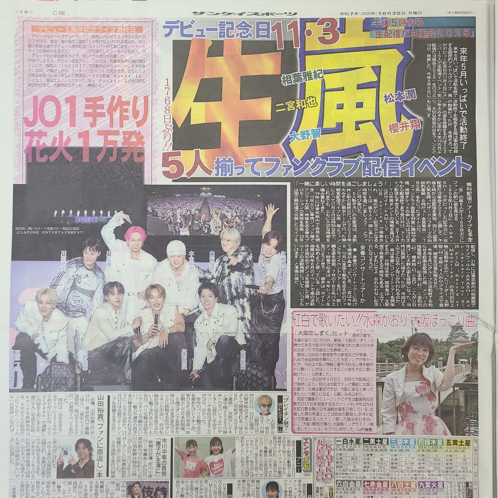 即購入OK!! 掲載期間:1日程度!! 徐々に値下げ致しますので 値下げ不可!!新聞まるごと発送致します。 在庫無くなり次第削除致します。 お早めに!! 匿名配送!送料込み! 10月20日 朝刊  スポーツ紙全5社 ☆ JO1 5周年 1万発の花火 バックに18 曲!!                  他          上記の記事は5社掲載あり!! 新聞はまるごと発送致します!! 日刊スポーツ スポーツ報知 スポニチ ディリー サンスポ 切り取りはございません。 厚みの関係で新聞まるごとの 同梱発送出来ません。 同梱希望は 掲載面のみ3セット以下で発送致します。 コメント下さい!専用出品致します。 追加 1セットにつき 送料 220円値引きします 数に限りがあるためバラ売りは出来ません。 まとめ売りは10セット以上20セット以下で 1枚100円 送料が一律 1000円です。 新聞はまるごと発送致します。 早めにコメントいただければ 対応できるかと思いますのでよろしくお願いいたします。 関東版の新聞になります。 目立つダメージはございませんが、店頭に陳列されていたものですので、多少のヨレ、折れなどがある場合がございます。 ご理解いただける方のみ ご購入くださいませ。 発送は掲載面保護もあり新聞まるごと 二つ折り後、opp袋で水濡れ対策行いA4サイズの封筒にてネコポス便のみの匿名発送で致します。 到着後何かございましたら評価前に コメント下さいませ。 返品、返金、対応致しますので ご安心下さいませ。 #山田涼介 #SexyZone #中島健人 #佐藤勝利 #マリウス葉 #菊池風磨 #松島聡 #SixTONES #ジェシー #田中樹 #高地優吾 #京本大我 #松村北斗 #森本慎太郎 #ジャニーズWEST #重岡大毅 #藤井流星 #神山智洋 #中間淳太 #King&Prince #キンプリ #平野紫耀 #神宮寺勇太 #岸優太 #髙橋海人 #永瀬廉 #櫻井翔 #相葉雅紀 #二宮和也 #大野智 #松本潤 #ジャニーズ #SnowMan #スノーマン #ラウール #岩本照 #目黒蓮 #深澤辰哉 #佐久間大介 #渡辺翔太 #向井康二