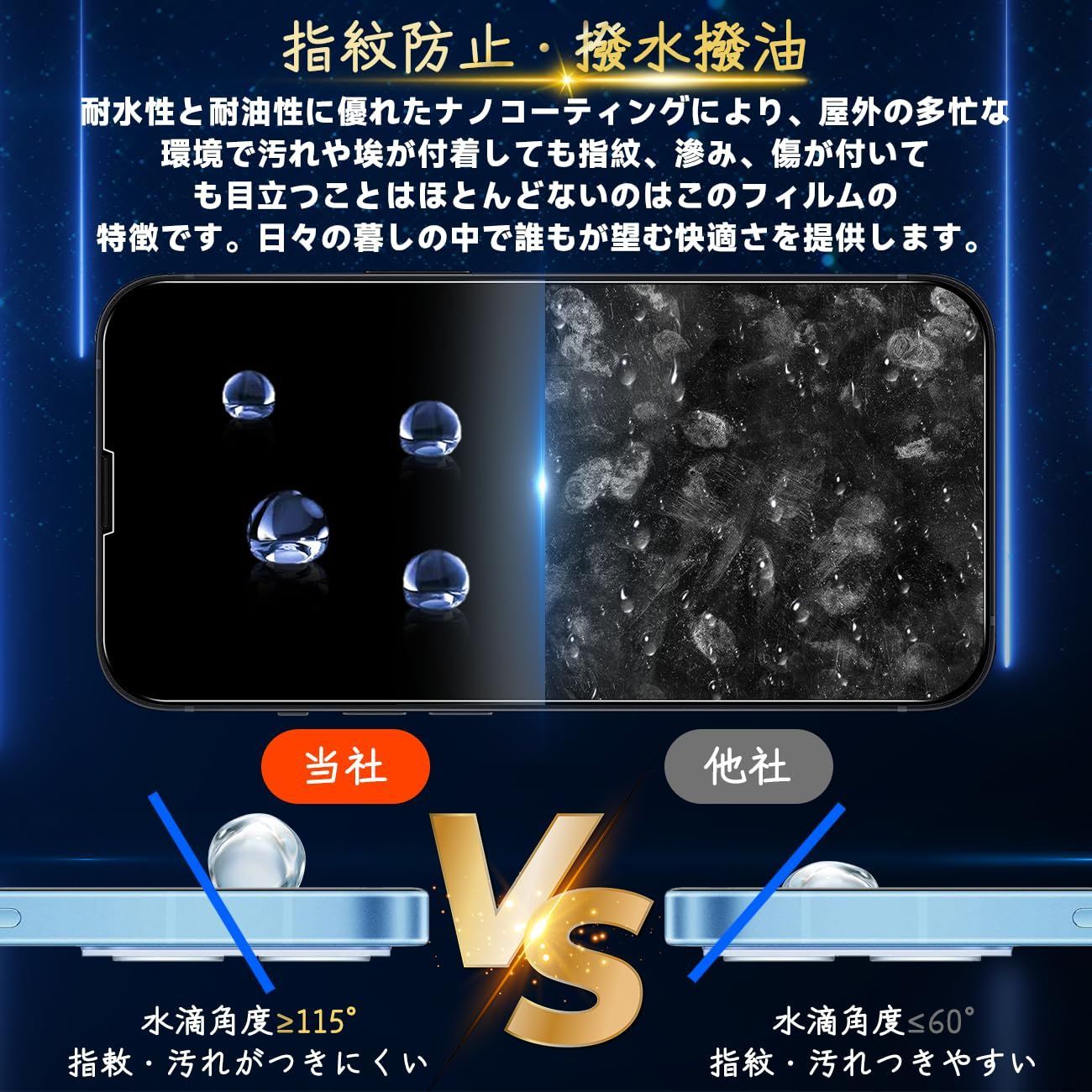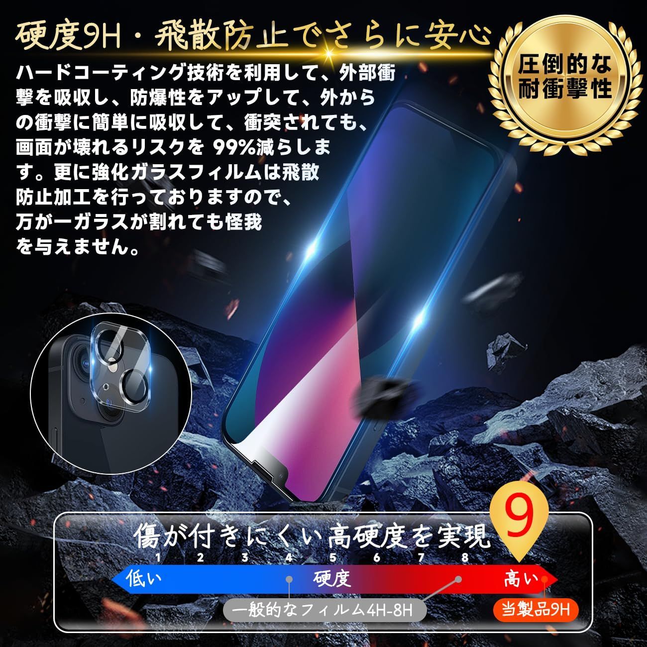 【高品質材質・9H硬度】 ガラスフィルムとレンズ保護フィルムはすべて旭硝子で作られており、スマホ保護フィルムの中で最高レベルの9H硬度に達します。しかも4.5時間以上の高温焼入れ処理を行い、スクリーンプロテクターの圧強度は125mpaに達し、通常 ガラス の 5 倍になりました。スクリーンプロテクターは衝撃を抑えるシリコンコーティングを内蔵しており、万が一ガラスが割れても、ガラスの破片が飛散しません。ハードコーティング技術は、衝撃を最小限に抑えて画面の破損を防止し、すり傷防止や指紋防止もしっかりしております。*大切な携帯電話の液晶画面を保護し、衝撃や表面のキズを防止します。