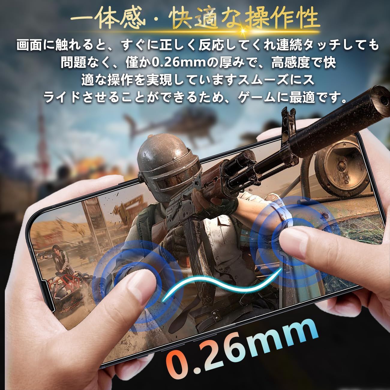 【汚れ防止&指紋防止 / 防水 / 耐油性】 保護フィルム は、石材ナノコーティング層の最新の指紋防止技術を使用していますので、通常フィルム のようなラフなタッチは一切ありません。画面がさらさらで指紋が付きにくい、高感度で快適な操作を実現することができます。スムーズにゲームプレイ体験できる同時に、長時間に楽しむなどの利点もあります。*万が一付着した指紋、水滴、汗、化粧品などは簡単に拭き取れます。市場に出回っている99%の携帯電話ケースに互換します;強化ガラスのサイズは携帯ケースを取り付けるためのスペースを余裕して、両側が浮き上がらないように確保します。何百もの携帯電話ケースにテストした後、99%問題がなく対応できます。