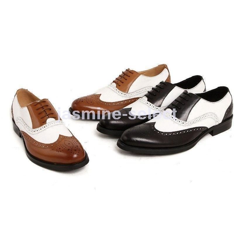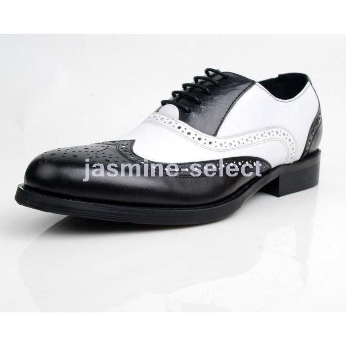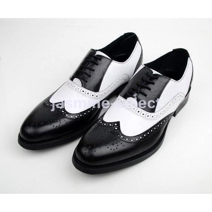 新品 白黒コンビビジネスシューズメンズ2トン内羽根紳士靴ウイングチップエナメル革靴ロングノーズレースアップメダリオンヴィンテージ父の