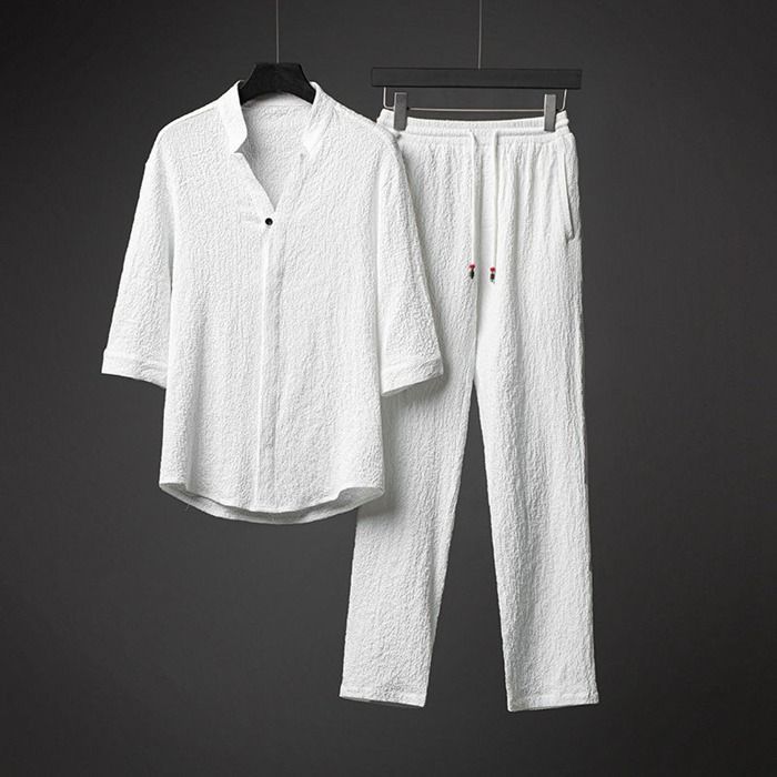 セットアップメンズ夏ロング丈ひんやりTシャツルームウェアロングパンツパンツ接触冷感カジュアル父の日綿麻風上下セット部