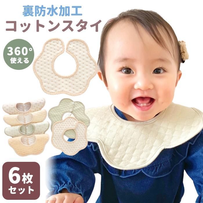 スタイ 6枚 セット 防水 360度 コットン おしゃれ 男の子 女の子 食事 よだれかけ お食事エプロン 前掛け 新生児 出産祝い ベビー 360°赤ちゃん キッズ 子供 綿 360 シンプル かわいい くすみカラー 綿 スタイセット 送料無料 ギフト