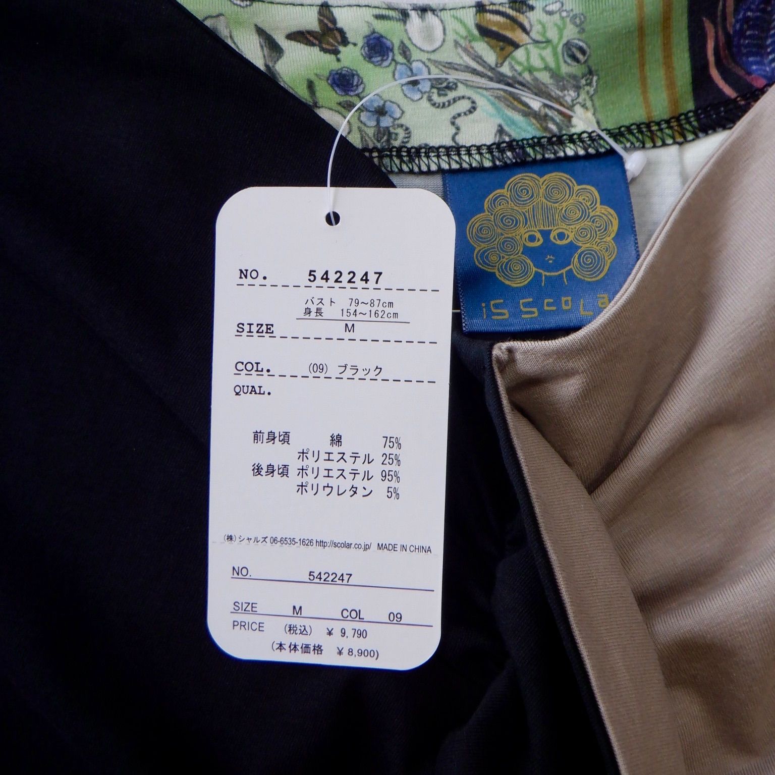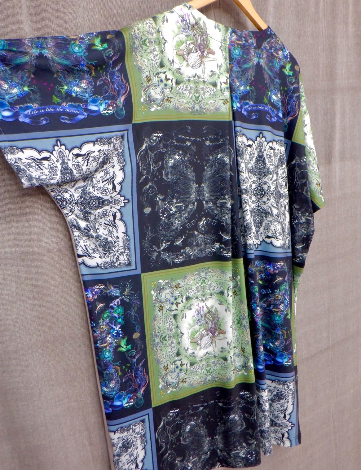 is ScoLar イズ スカラー 542247 蝶と海モチーフスカーフ柄 切替ワンピース