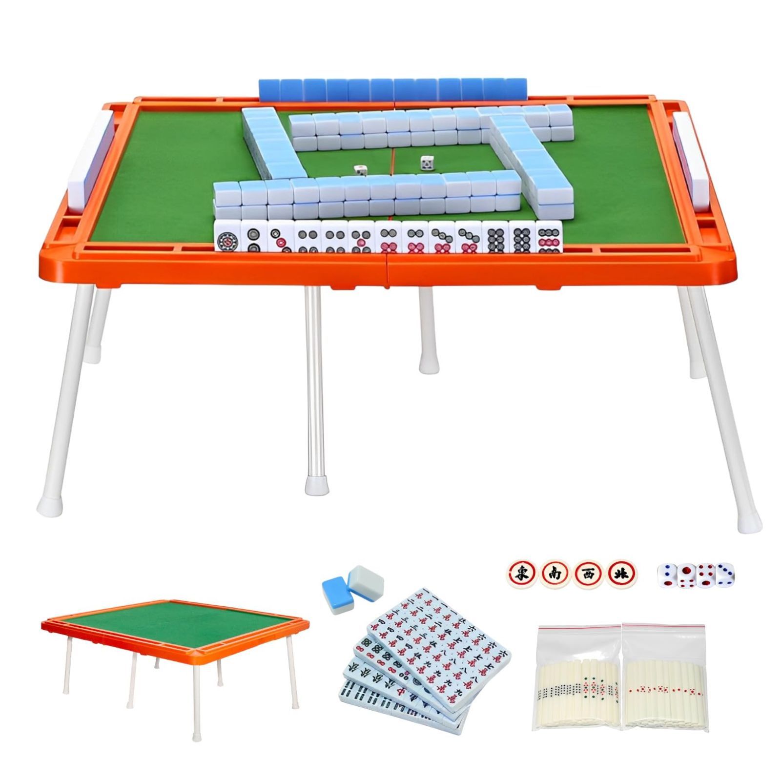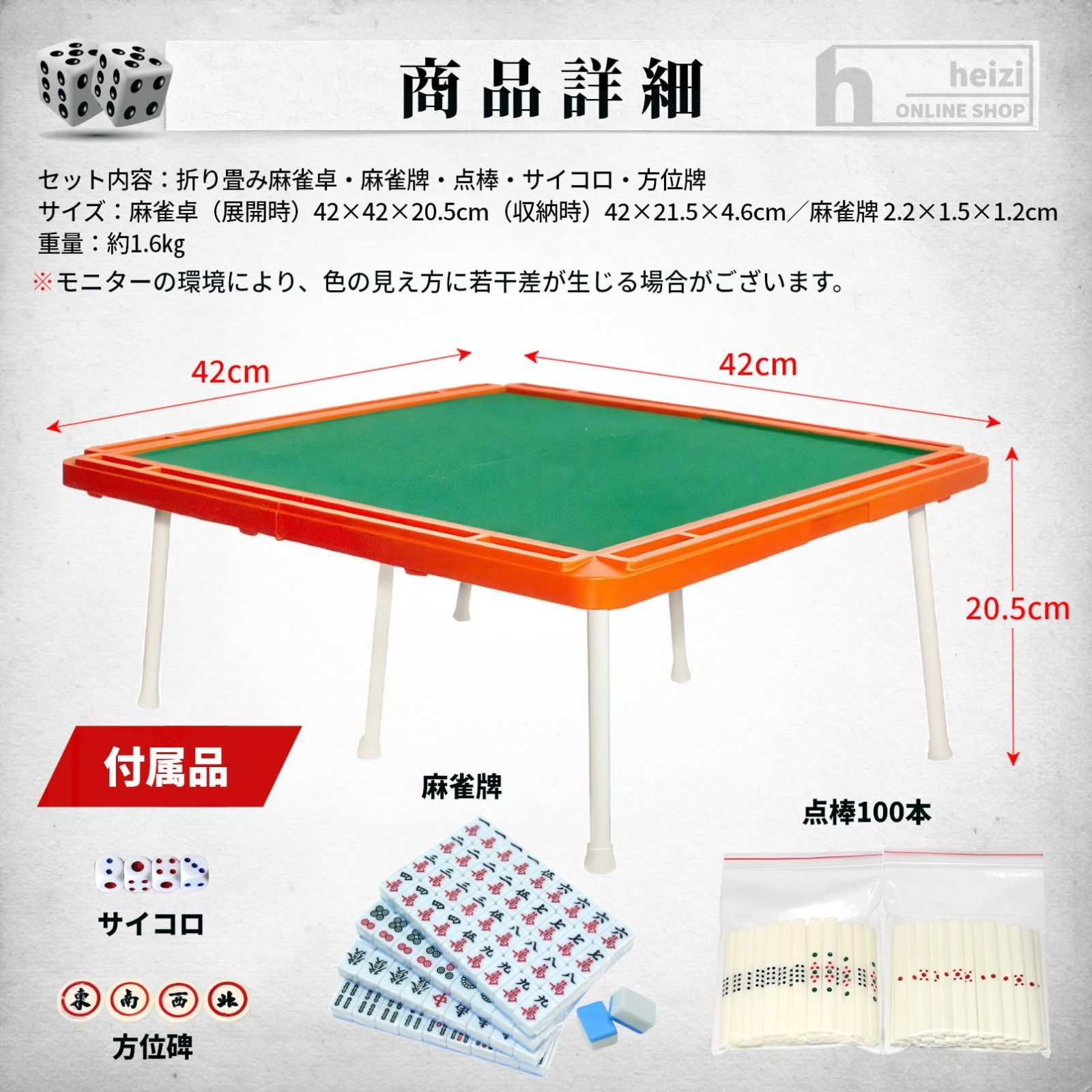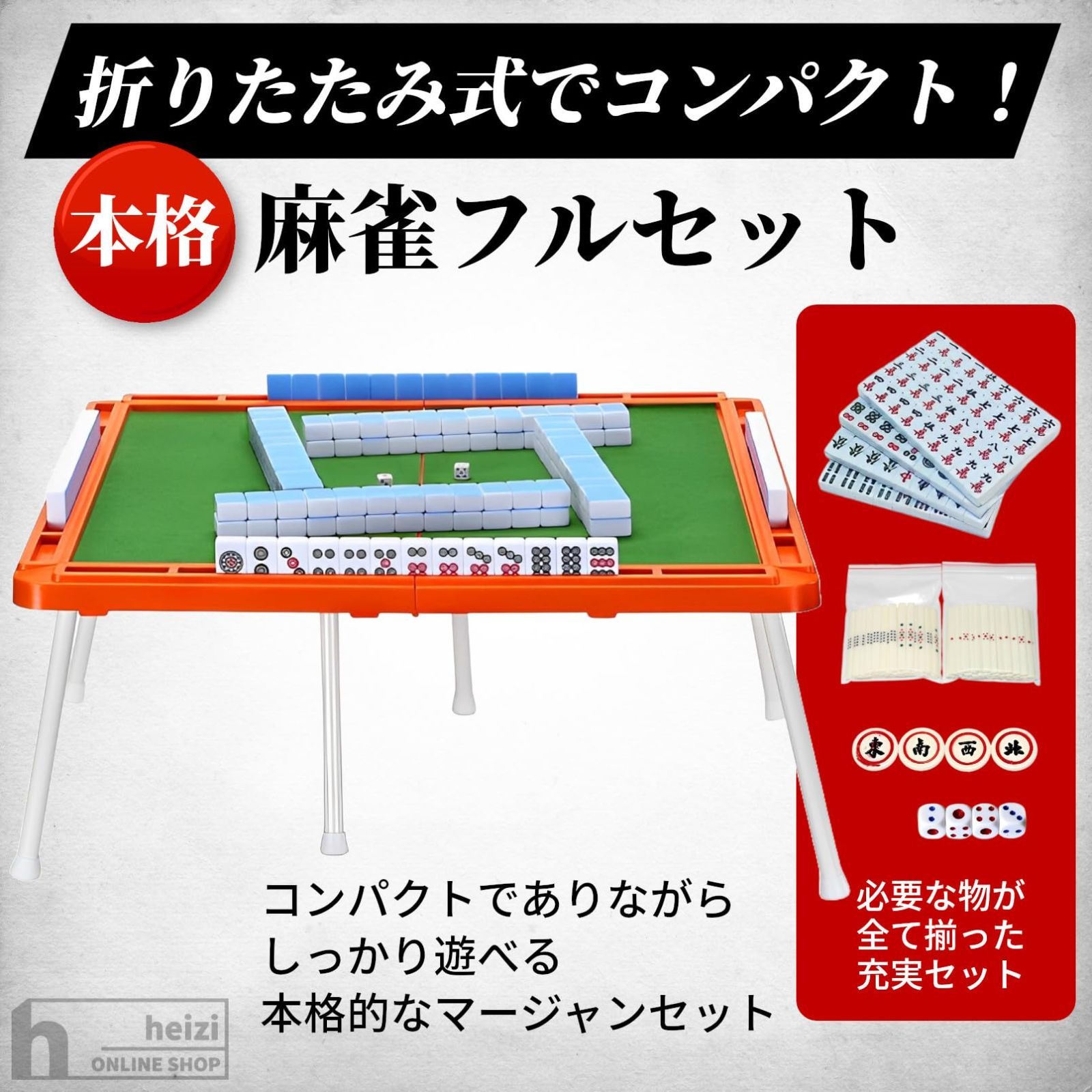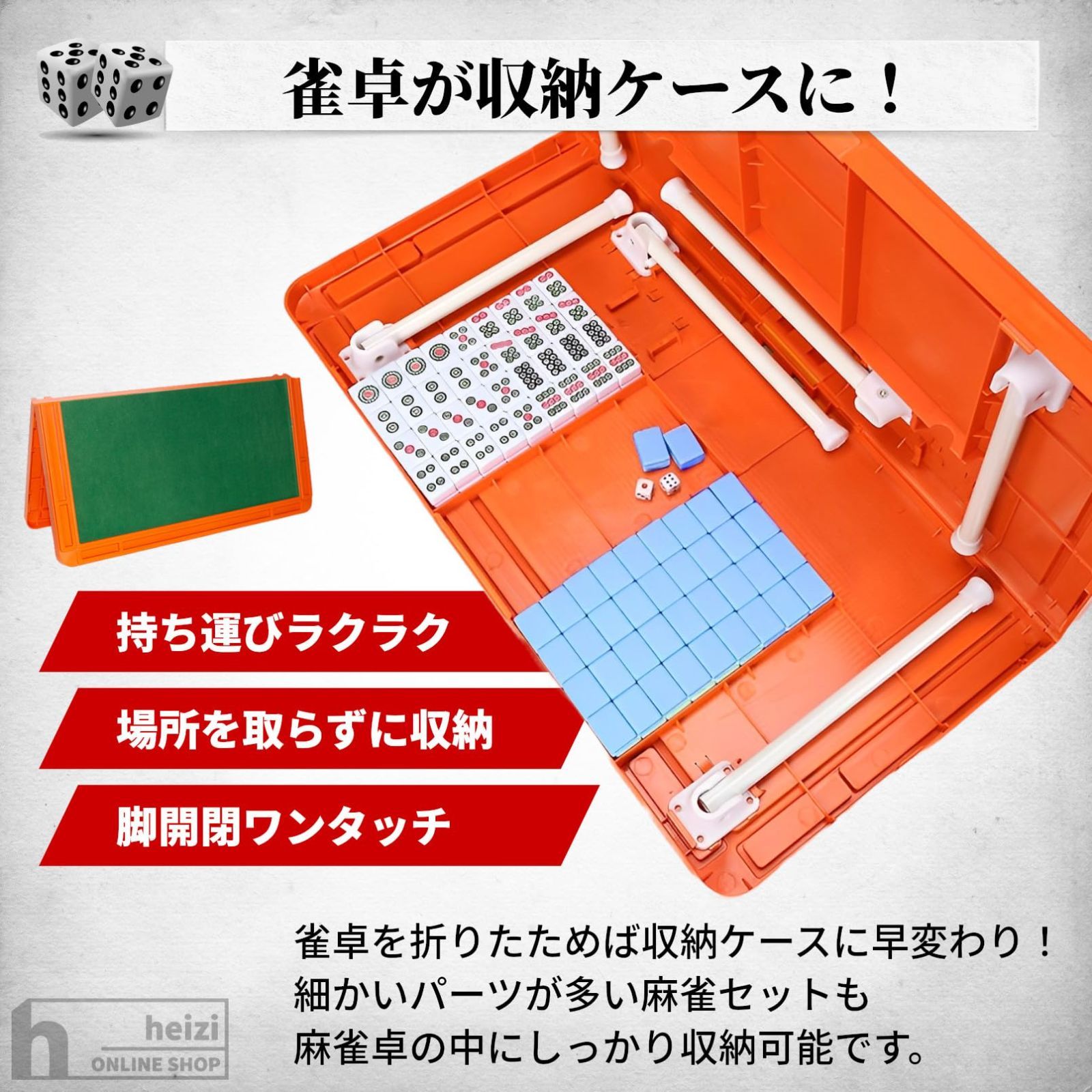 heizi 麻雀セット 麻雀卓 折りたたみ コンパクト 持ち運び 脚付き サイコロ 点棒 付き 雀卓 フルセット (麻雀牌 ブルー)