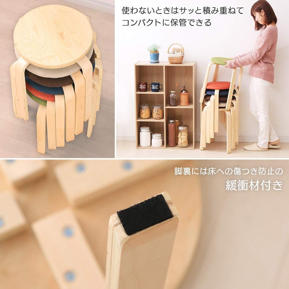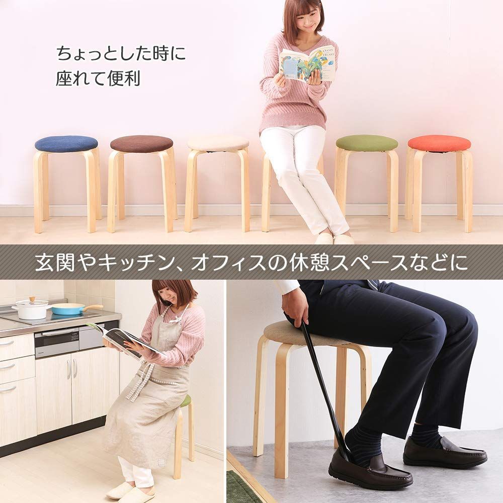 【人気商品】木製 椅子 スツール ブラウン ファブリック スタッキング アイリスプラザ 積み重ね収納 座面直径約32×高さ約45cm SL-02F