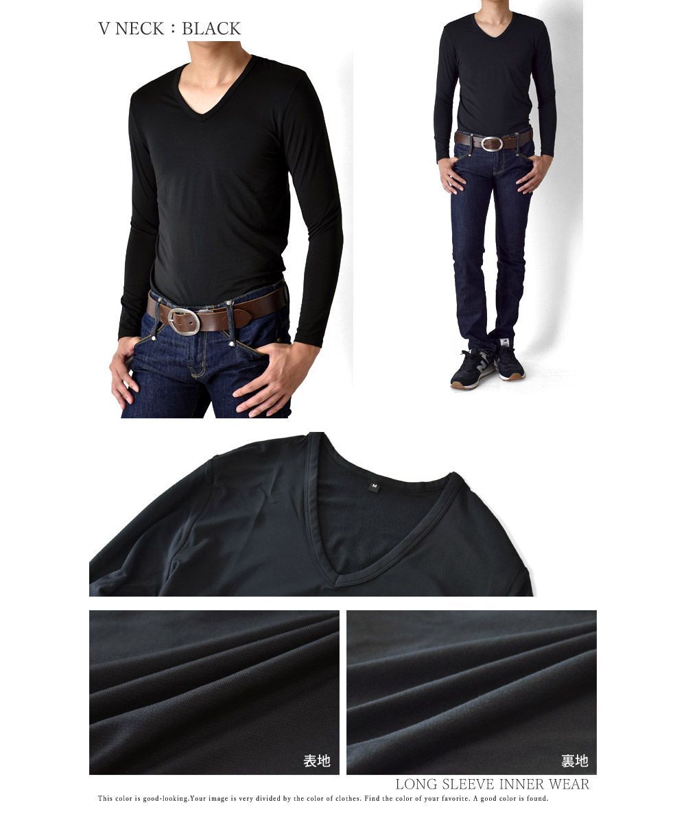 長袖Tシャツ 《Vネック:ブラック》 新品 未使用 暖 裏起毛インナー ロンT サスティナブル RENU ストレッチ 暖か【C3P】【メール便2】 ファッション