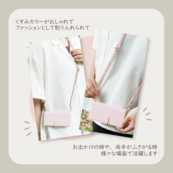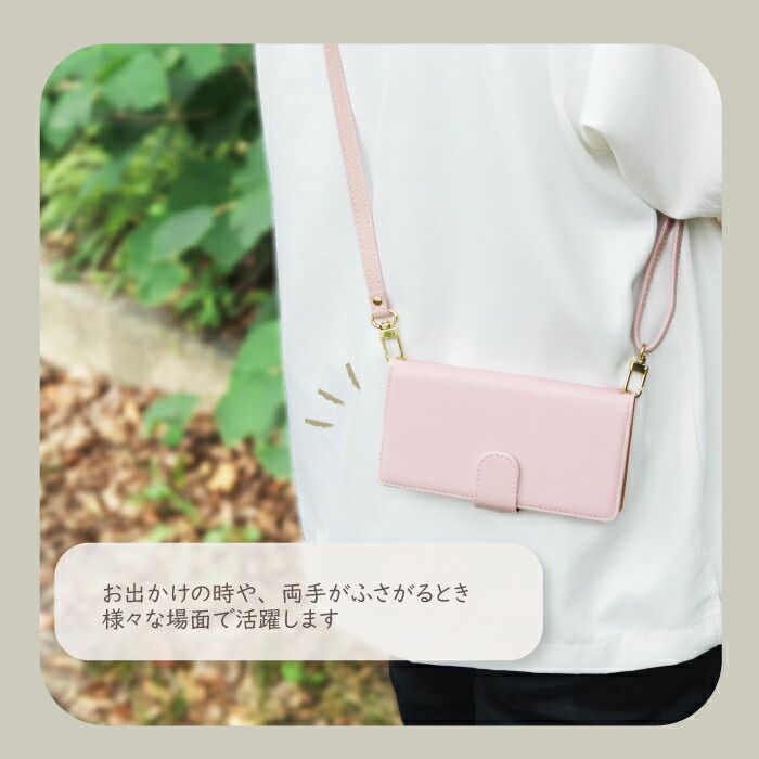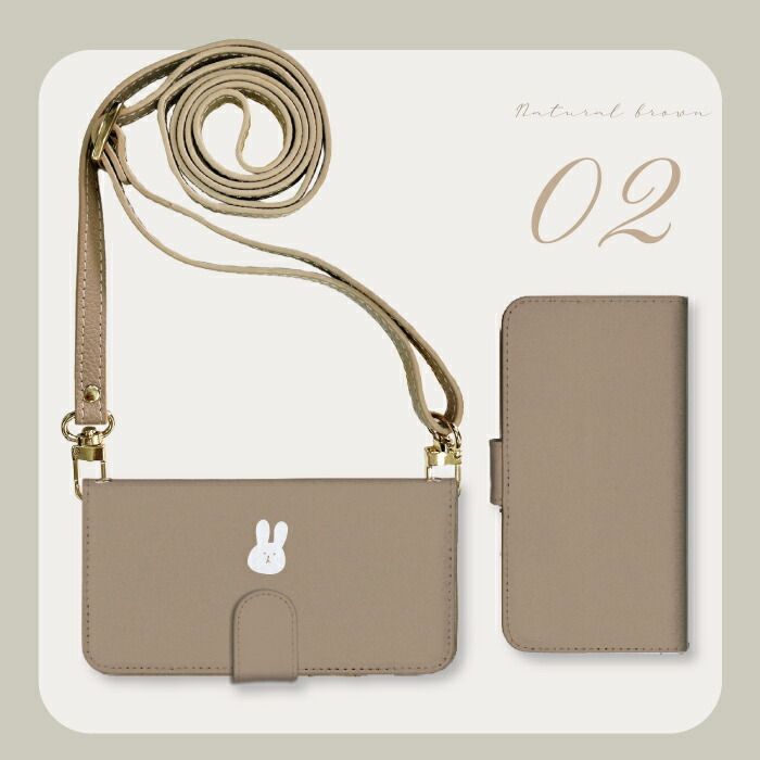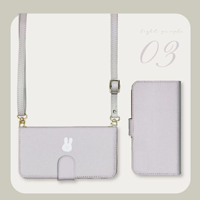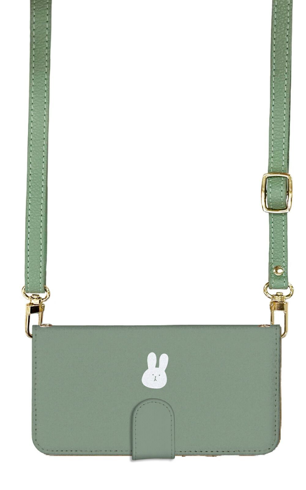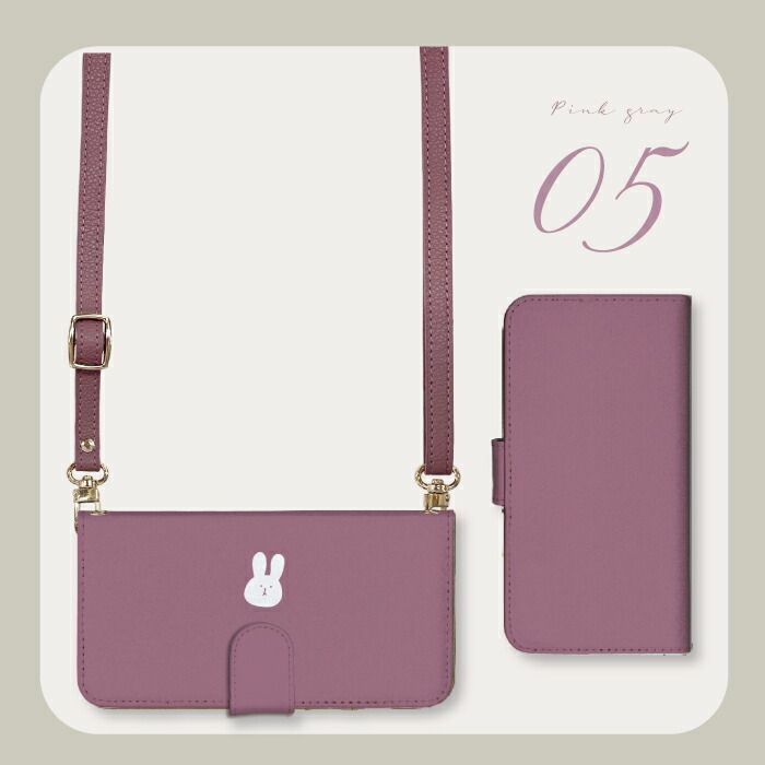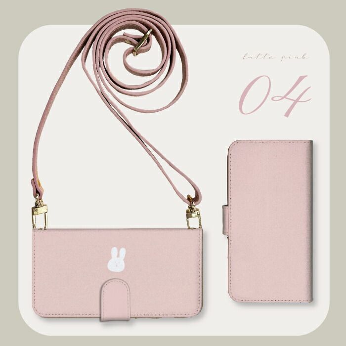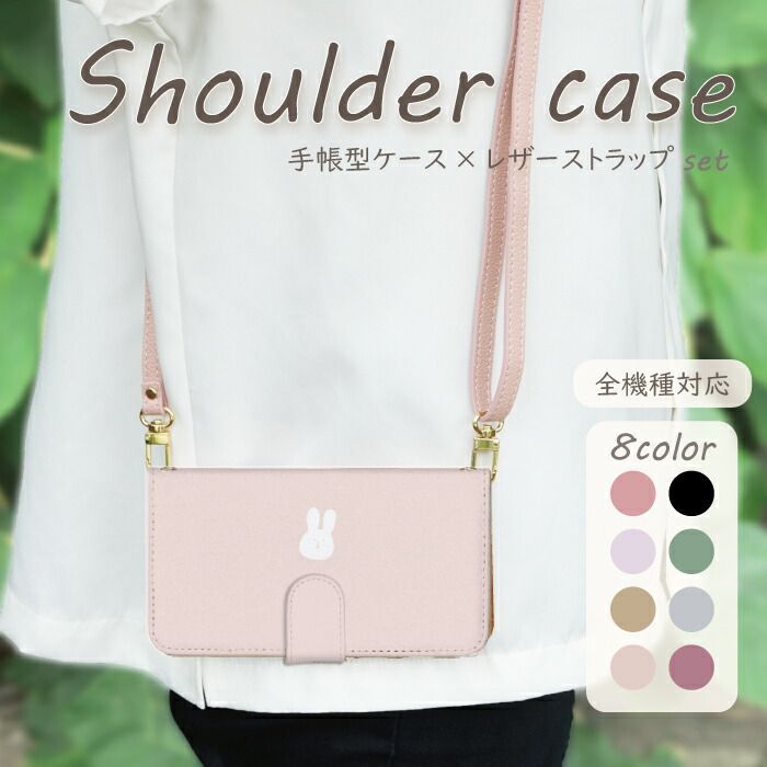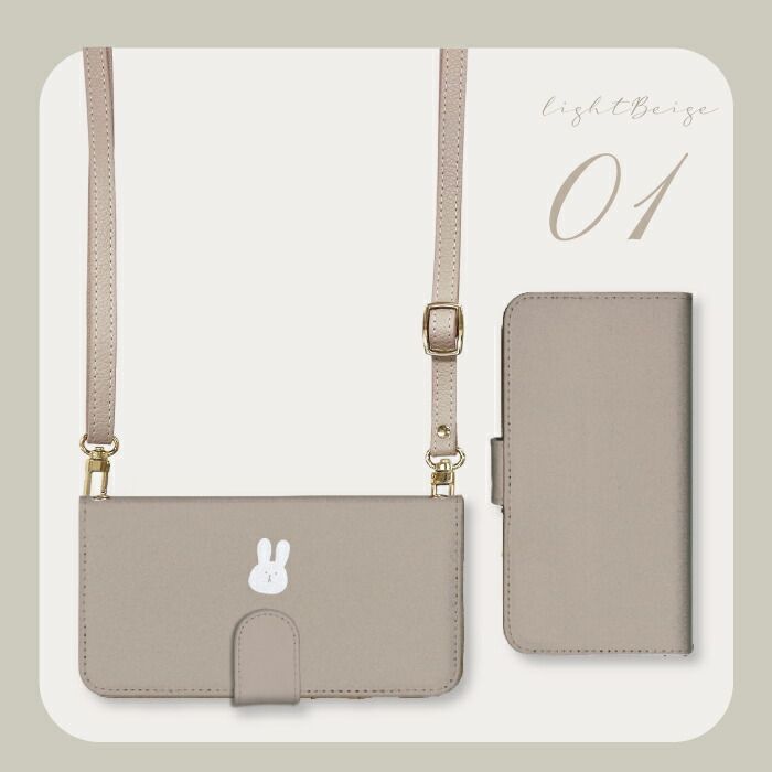 シンプルスマホ6 A201SH ケース 手帳型 スマホケース スマホショルダー レザー ストラップ ウサギ うさぎ 兎 総柄 ワンポイント かわいい 調節可能 130cm カラー07
