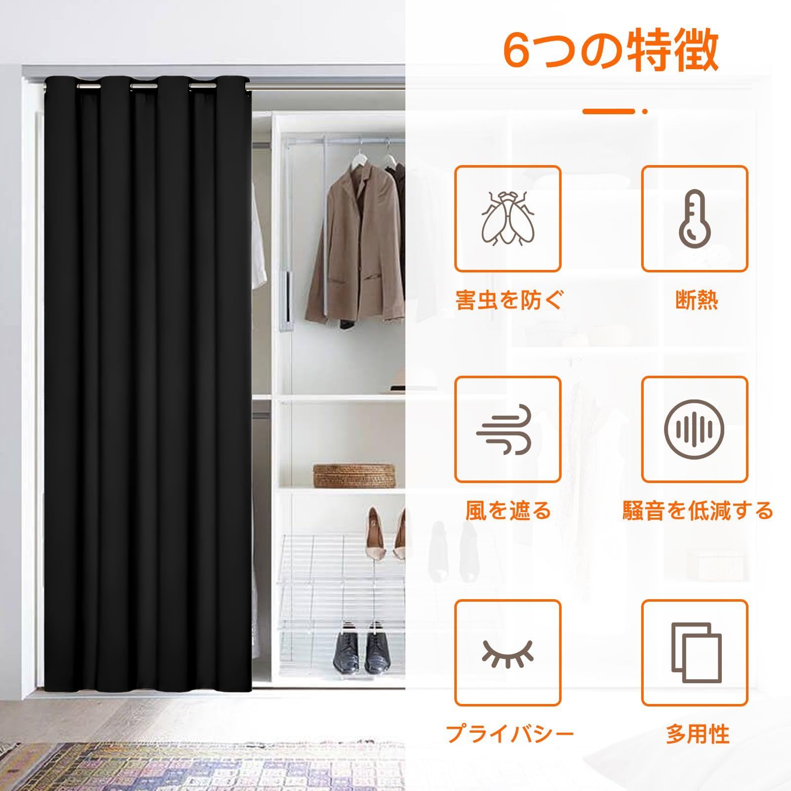 【新着商品】ハトメ型 間仕切り cm 目隠し 幅140cm丈240 断熱 ブラック UVカット 1級遮光カーテン 1枚入り Dehome