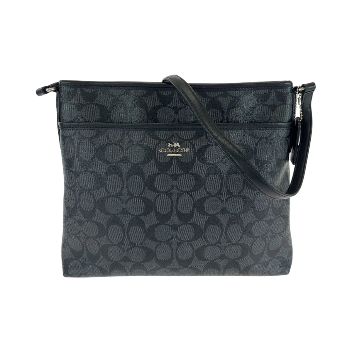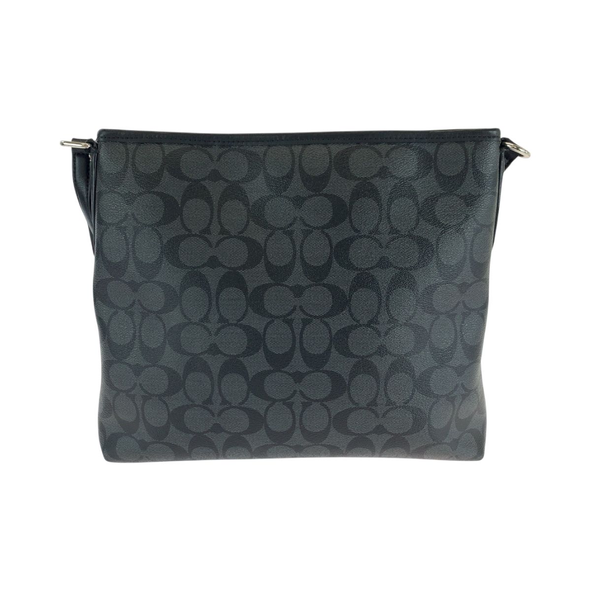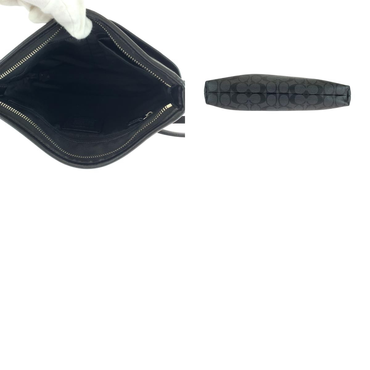 美品 COACH コーチ シグネチャー ロゴ ブラック 黒 グレー シルバー金具 PVC ショルダーバッグ ポシェット メンズ 501467【中古】
