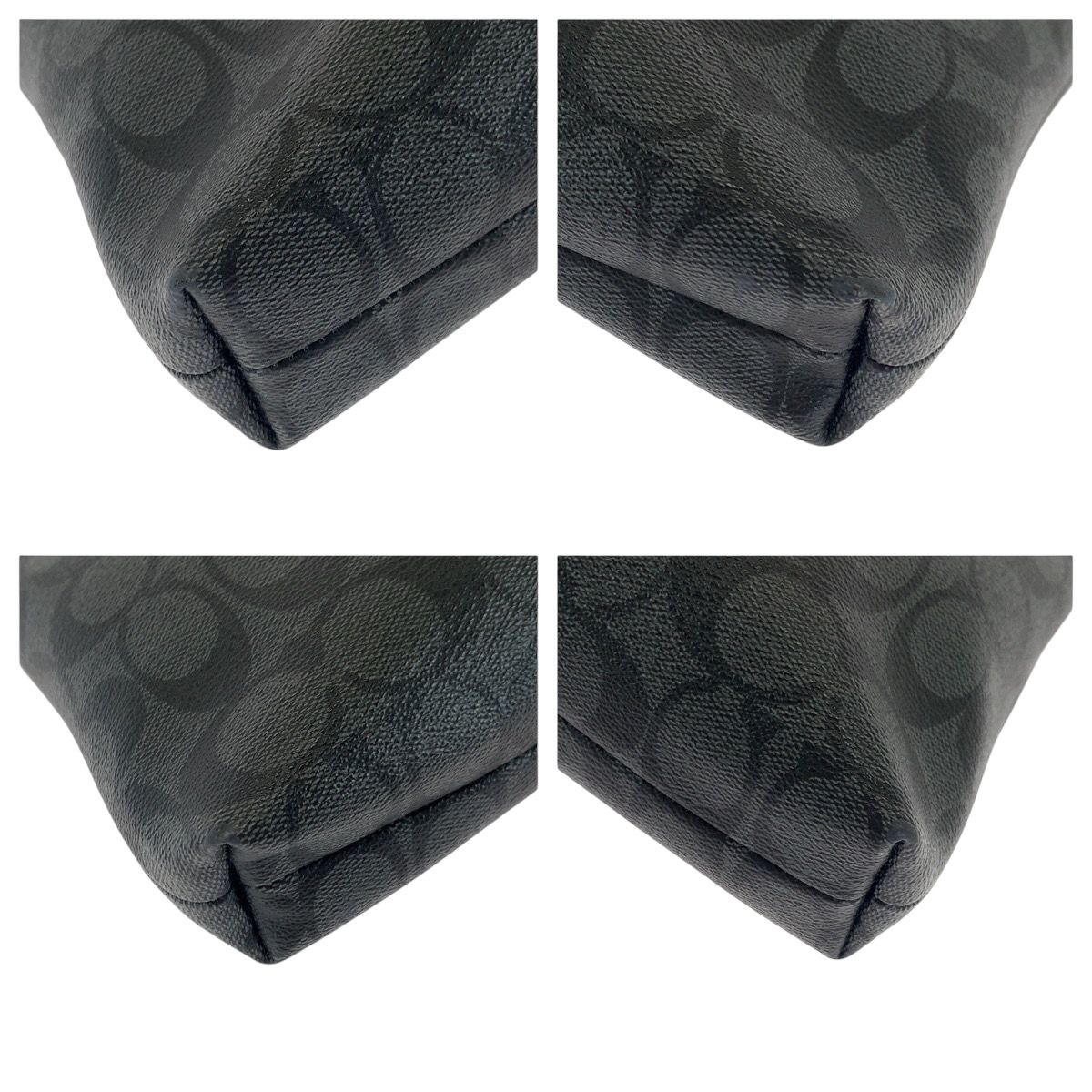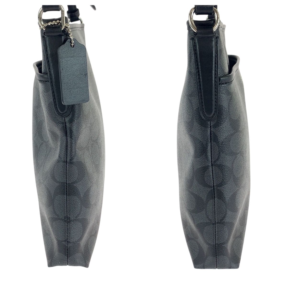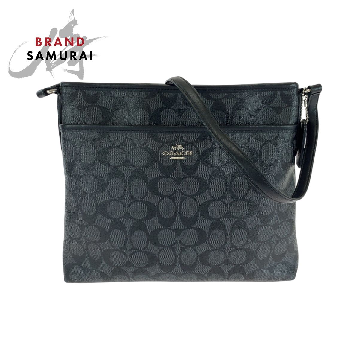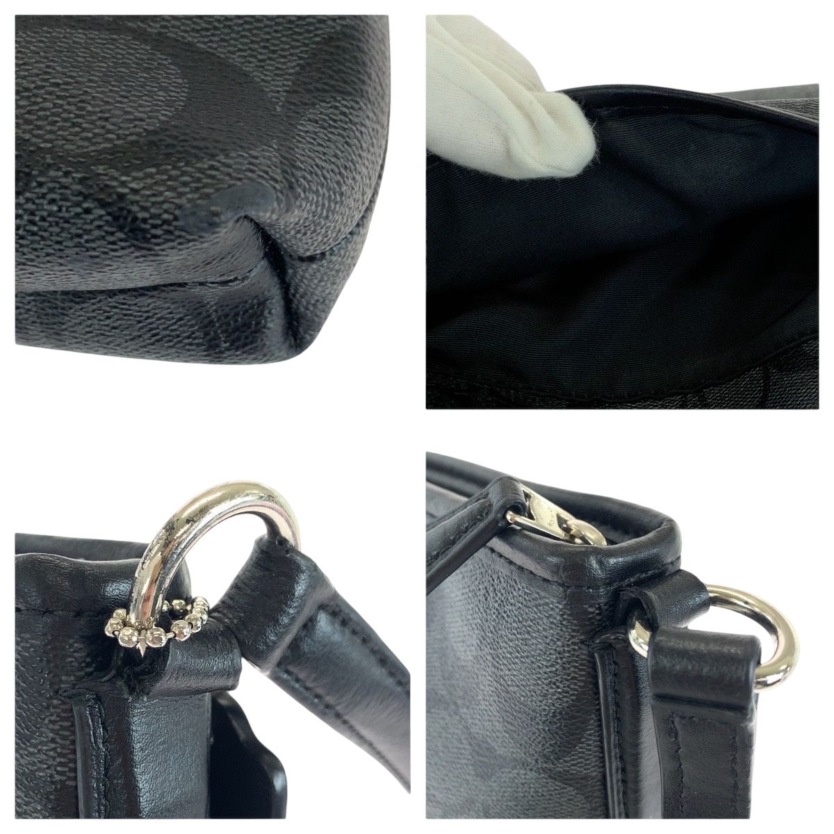 美品 COACH コーチ シグネチャー ロゴ ブラック 黒 グレー シルバー金具 PVC ショルダーバッグ ポシェット メンズ 501467【中古】