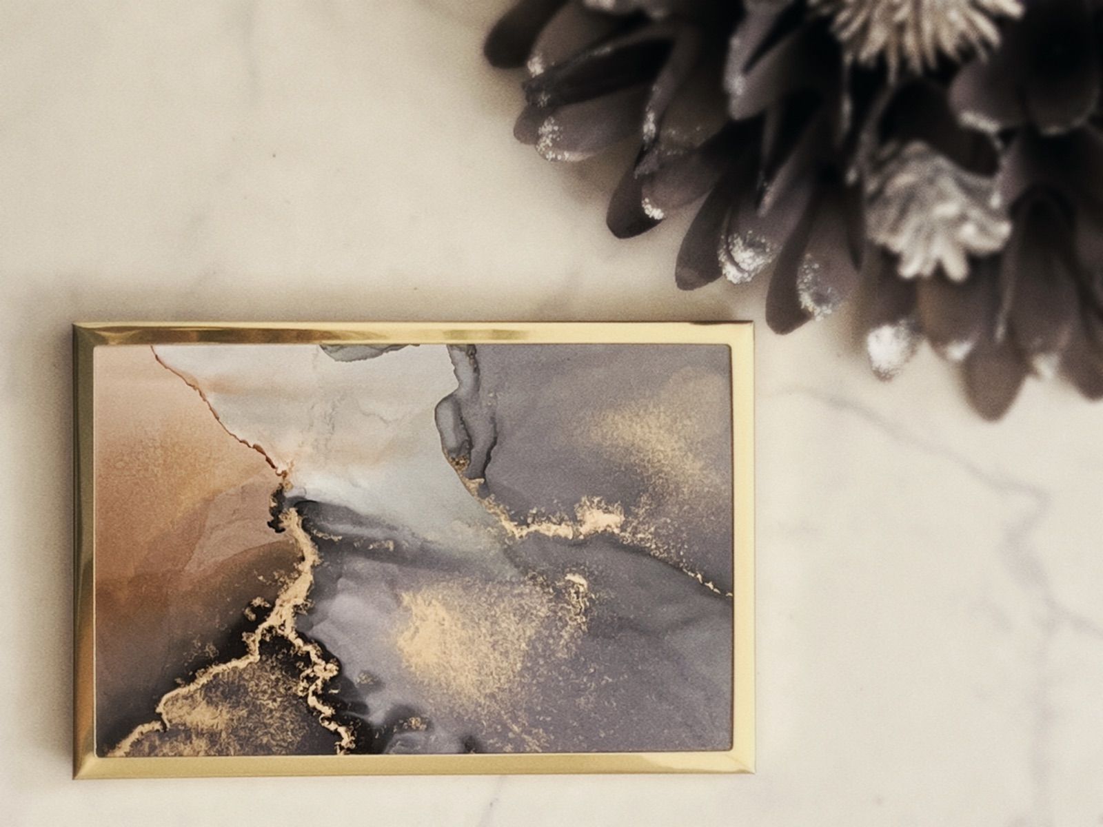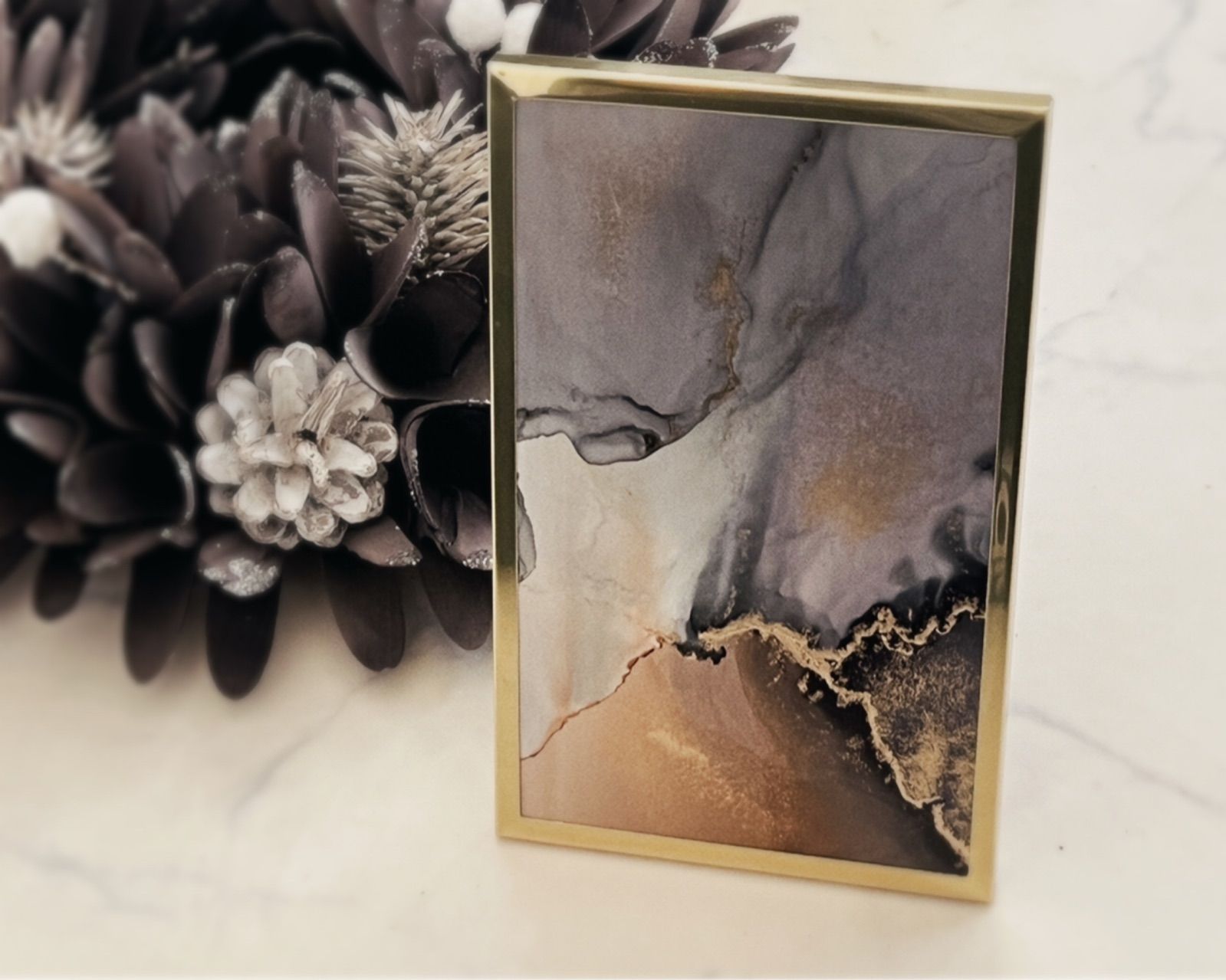 アルコールインクアート ブラウン×ブラック 額縁付き
