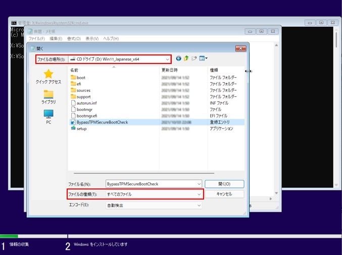 USBに保存されたマニュアル通りに操作すれば、セキュリティ要件(TPM2.0やセキュアブート)を満たしていない一昔前のパソコンでもWindows11(23H2)をインストールすることが可能です。