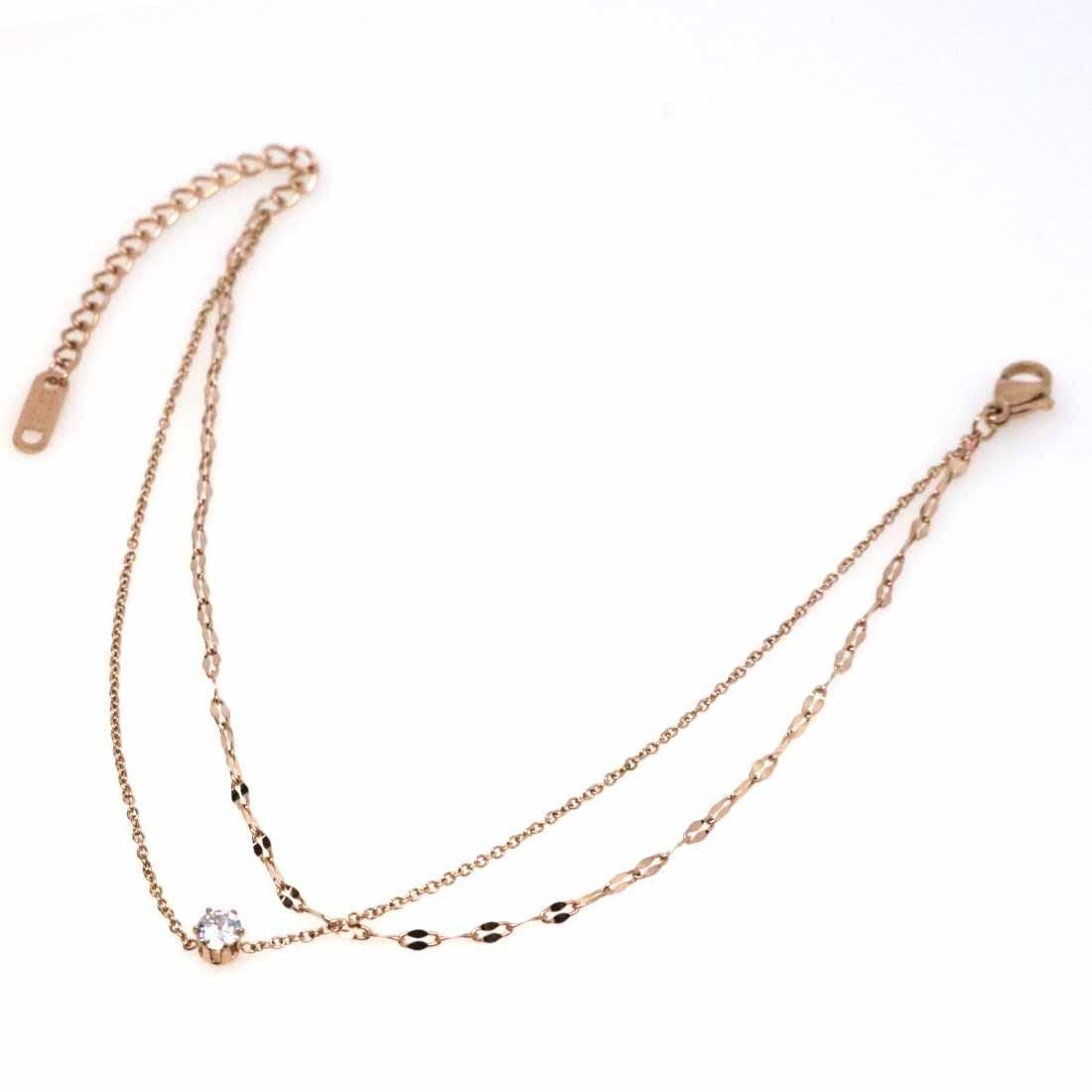 人気 ブランド Sp Labo から 繊細な 細め の 2連チェーン とキラキラ の ジルコニア が 可愛い ピンクゴールド の アンクレット です。ステンレス なので サビにも強く、つけっぱなし でも着用頂けます。アジャスター付きでサイズ調整が可能です。足首回り 18.5cm 19cm 20cm 21cm 22cm 23cm くらいまで が オススメ のサイズ感です。普段使い パーティー 2次会 フォーマル な シーンを選ばない シンプル な デザイン なので 女10代 20代 30代 40代 50代 60代 の 大人 の 女性 の プレゼント ギフト ホワイトデー などにも お勧め です。
