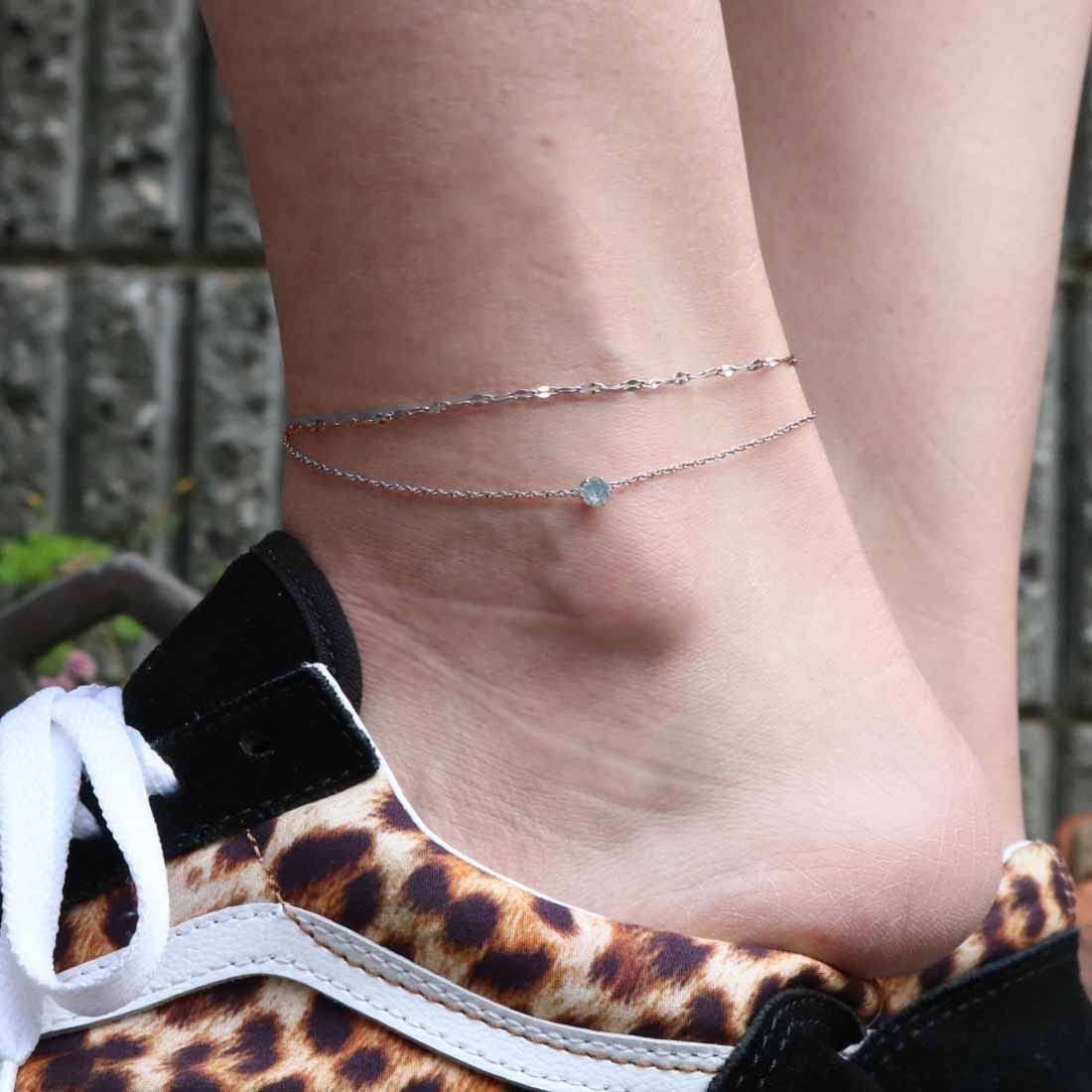 【サイズ】:[全長 約 27cm] [内径 約20.5cm(+5cmアジャスター調整可能)] [チェーン幅 1mmと2mm ジルコニア 4mm] [着用モデル足首回り 20cm]