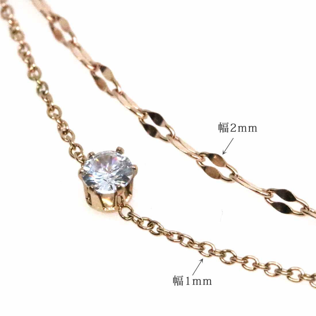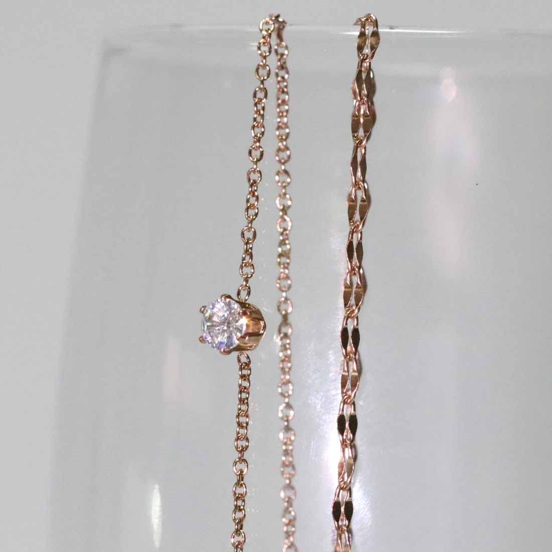 繊細な細めの2連チェーンとワンポイントでキラキラのジルコニアがとってもかわいいシンプルなデザイン