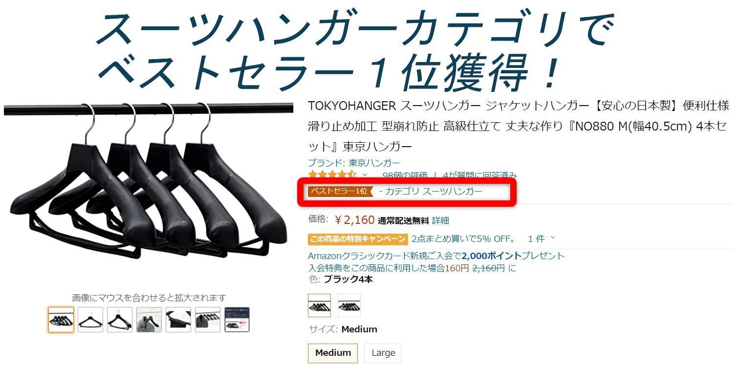 【在庫処分】スーツハンガー ジャケットハンガー【安心の日本製】便利仕様 TOKYOHANGER 滑り止め加工 型崩れ防止 高級仕立て 丈夫な作り『NO880 M(幅41.5cm) 4本セット』東京ハンガー