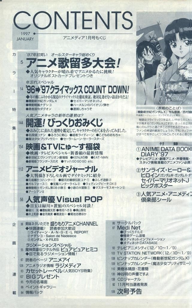 学習研究社 1997年(平成9年)のアニメ雑誌 本誌のみ アニメディア1997年(平成9年)1月号 9701