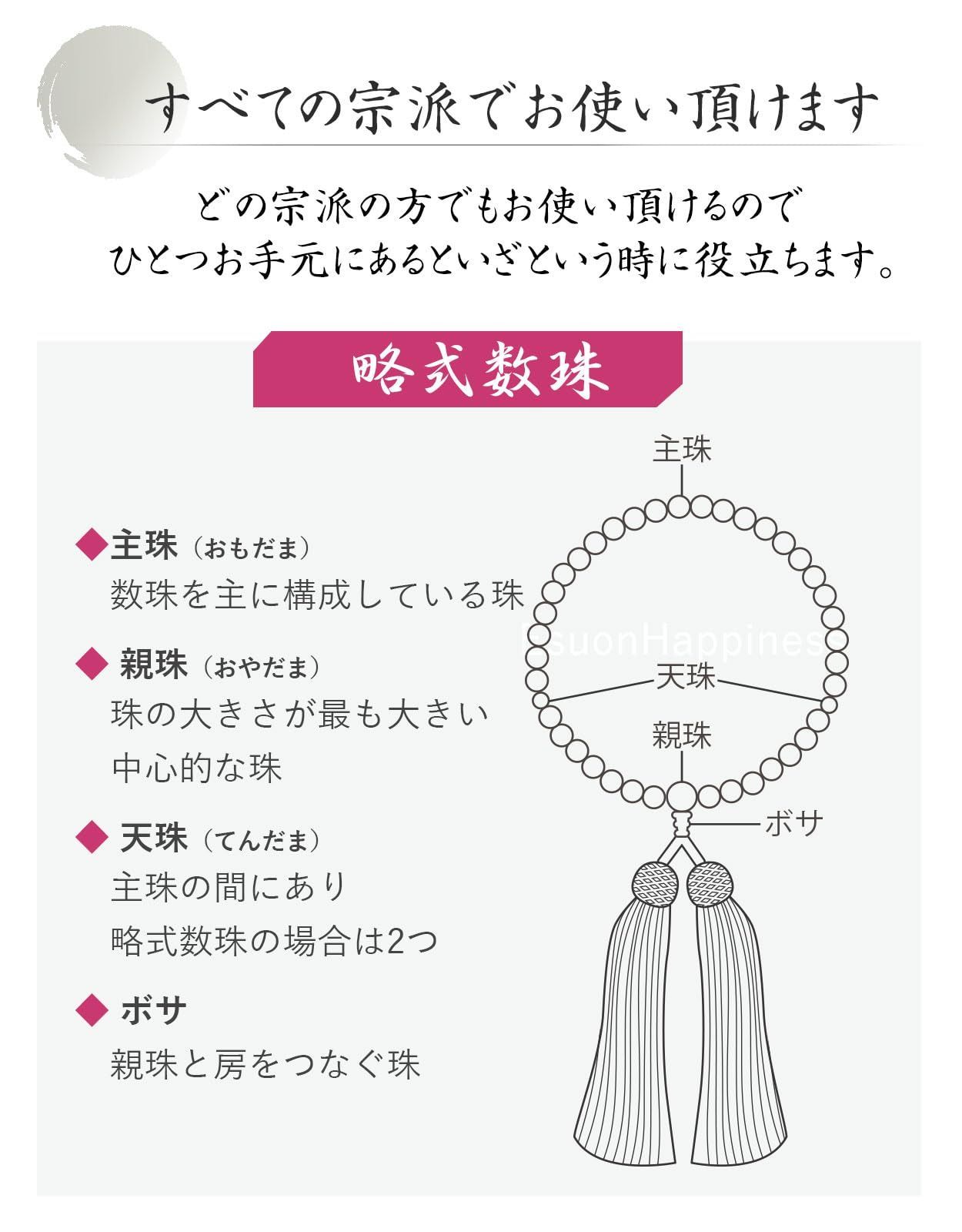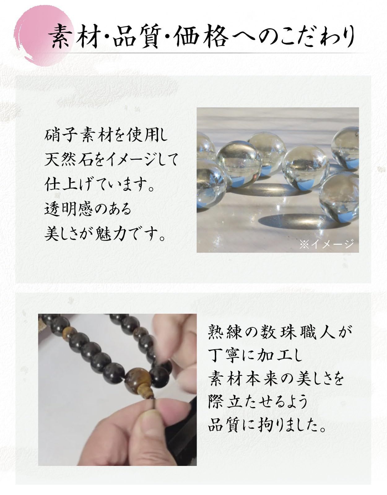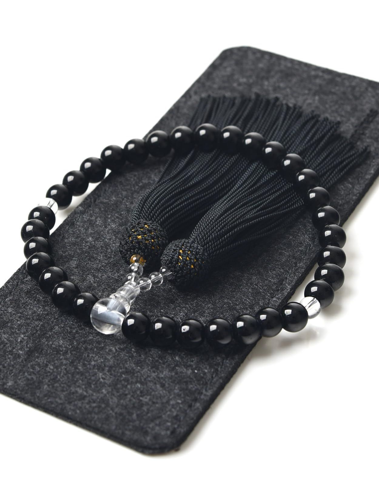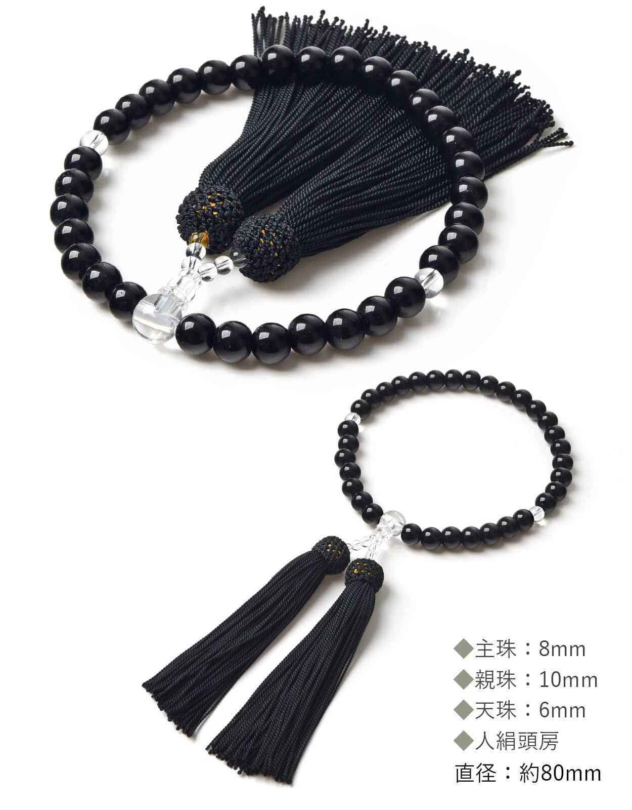 【数量限定】天然石色 数珠袋付き 葬儀 人絹房 法事 選べるお色 すべての宗派で使える 略式数珠 硝子 (オニキス色) 頭房 8mm 女性用 【EsuonHappiness】数珠