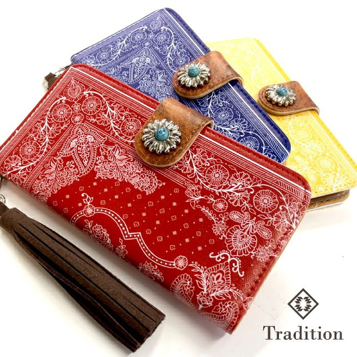 かんたんスマホ3 A205KC ケース 手帳型 簡単スマホ3 スマホケース フリンジ ストラップ付 コンチョ ペイズリー柄 バンダナ柄 レッド ネイビー ブラック カッコイイ 男性 メンズ カラー06