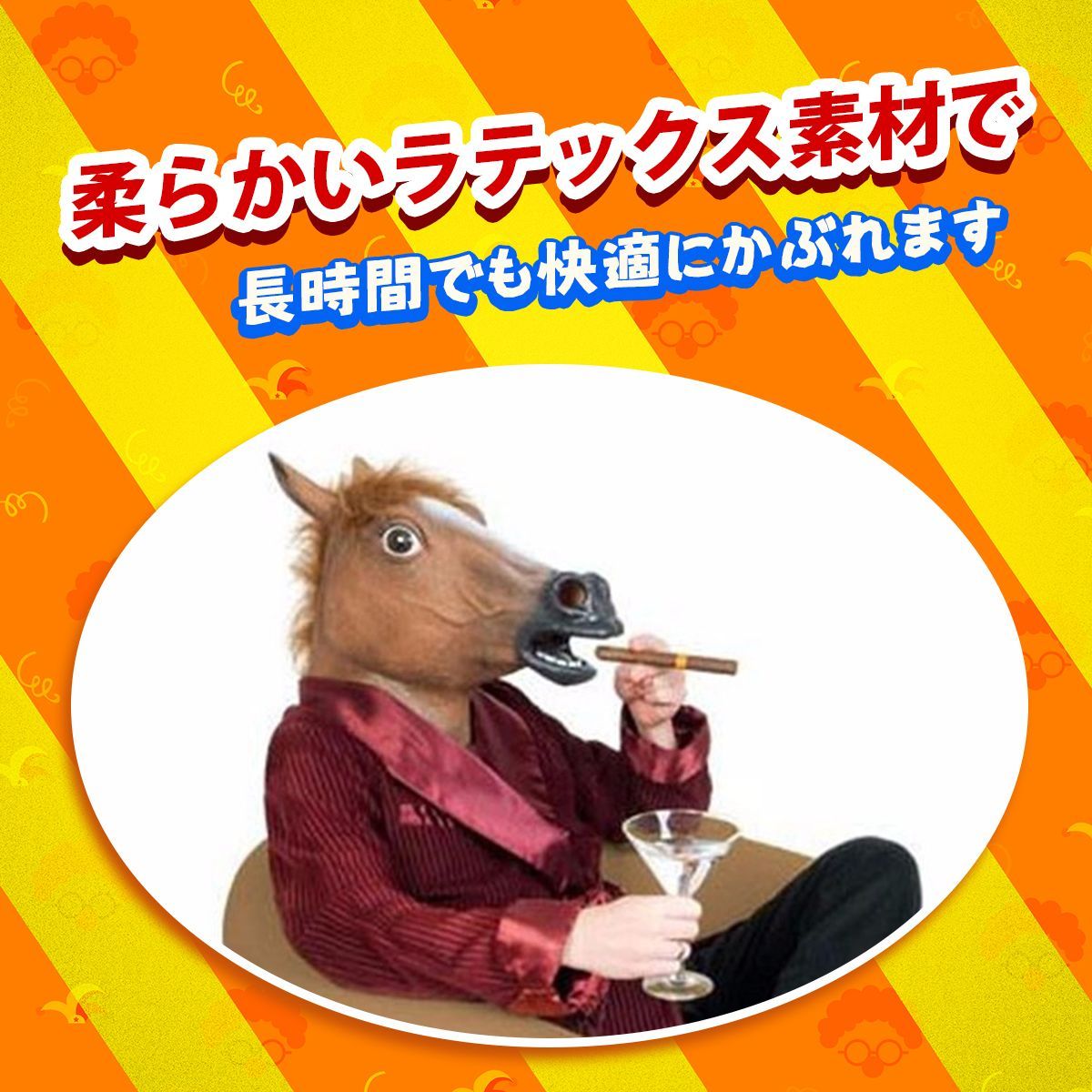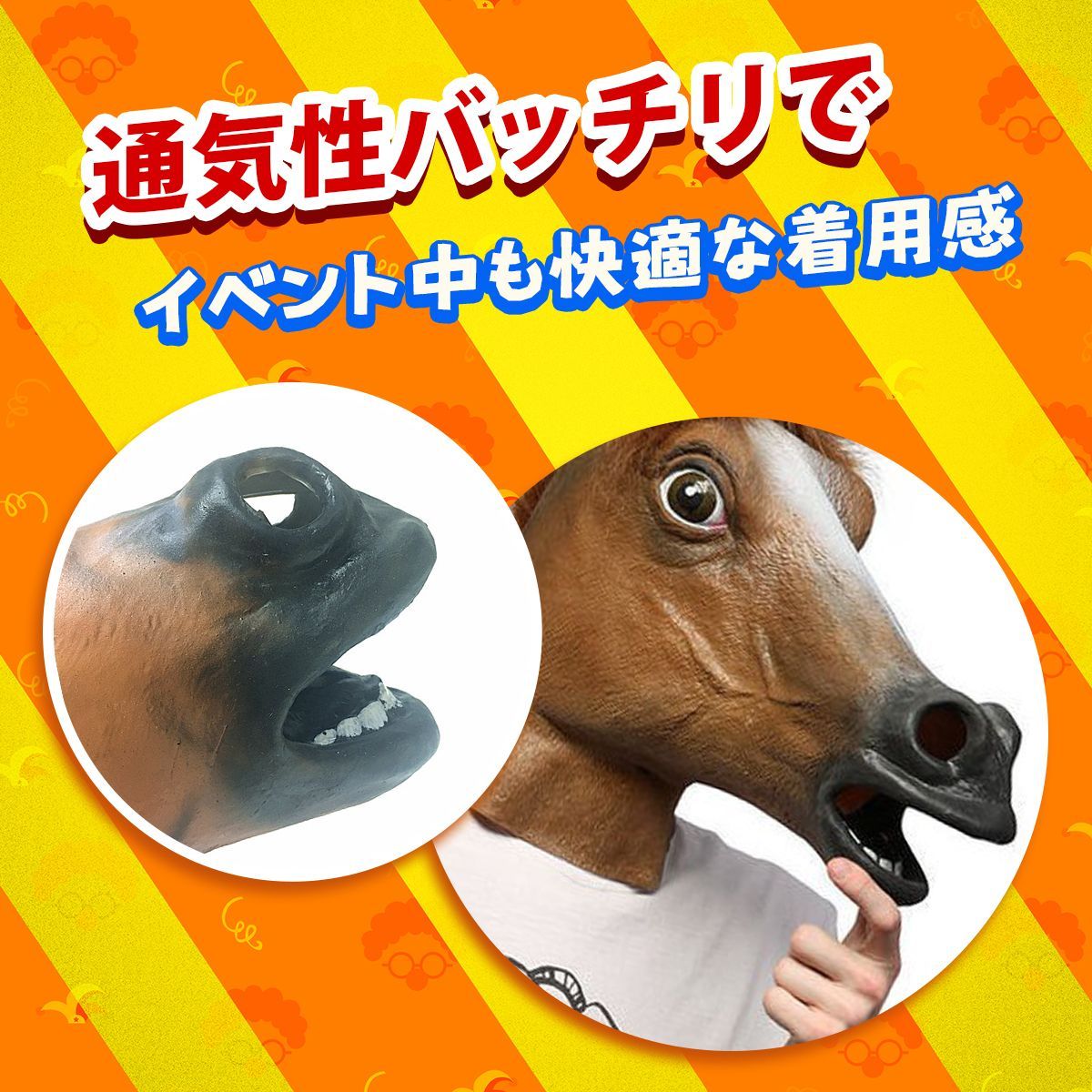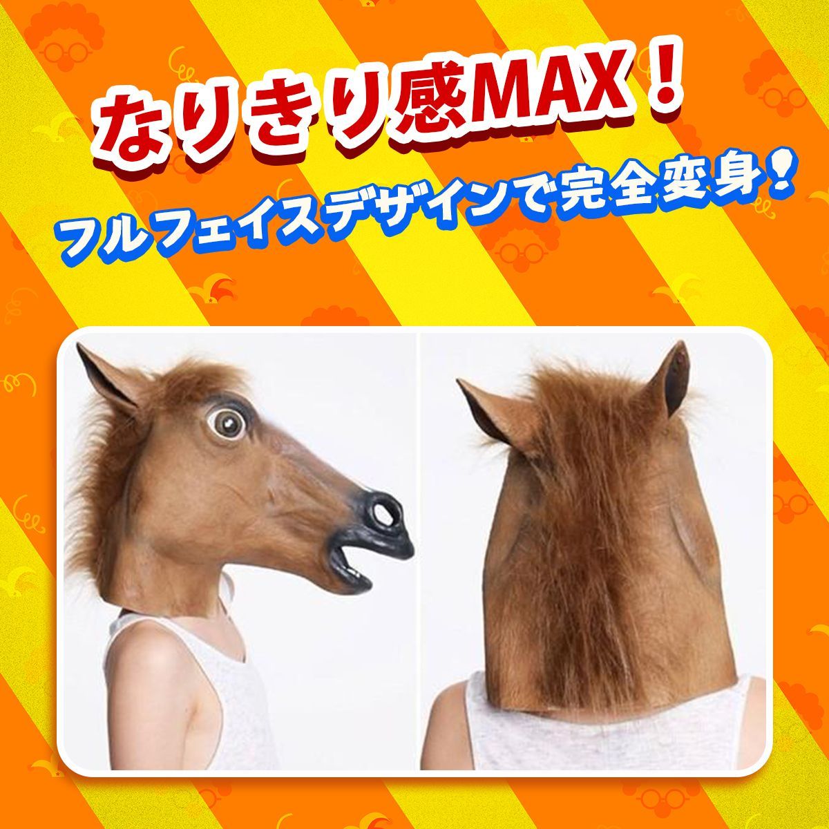 ✅【リアルな造形で注目度抜群】:精巧に作られた搪胶製の馬マスクは、毛並みや表情までリアルに再現!遠くからでも視線を集め、会場で一際目立つ存在に。