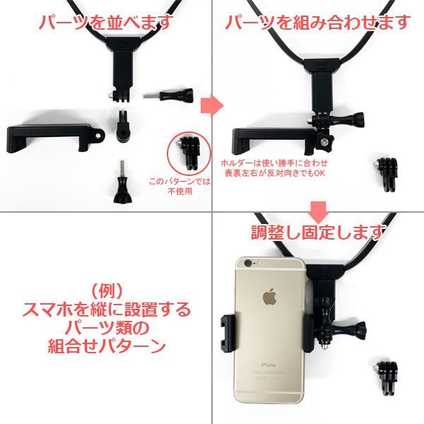 スマートフォン iPhone アイフォン アクセサリー ハンズフリー スマホ マウント 携帯 フリーハンド 子供 赤ちゃん ペット 主観 目線 撮影 抱っこ動画 首 下げ ネック 首かけ ネックレス カメラ 手元 料理 調理 釣り 【送料無料】