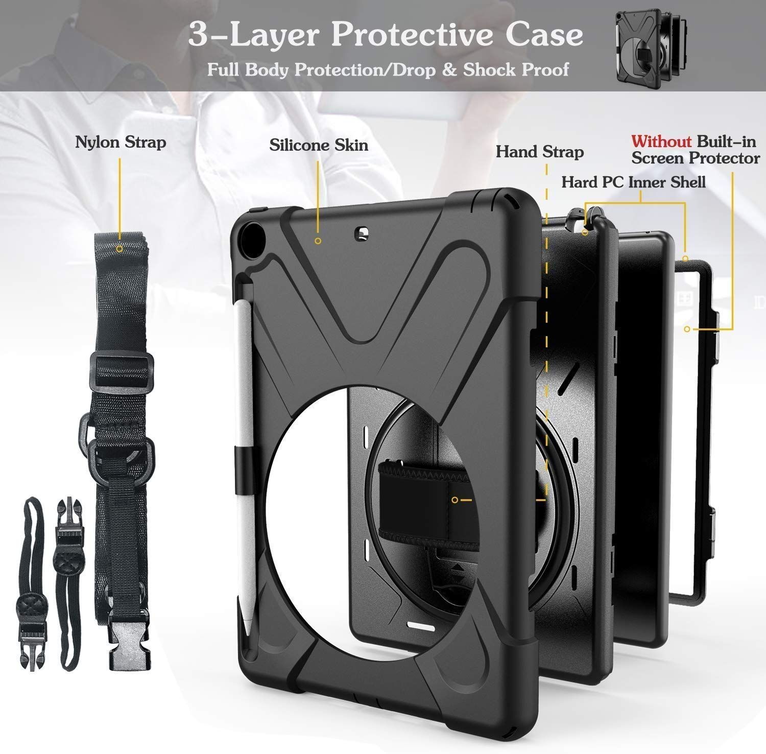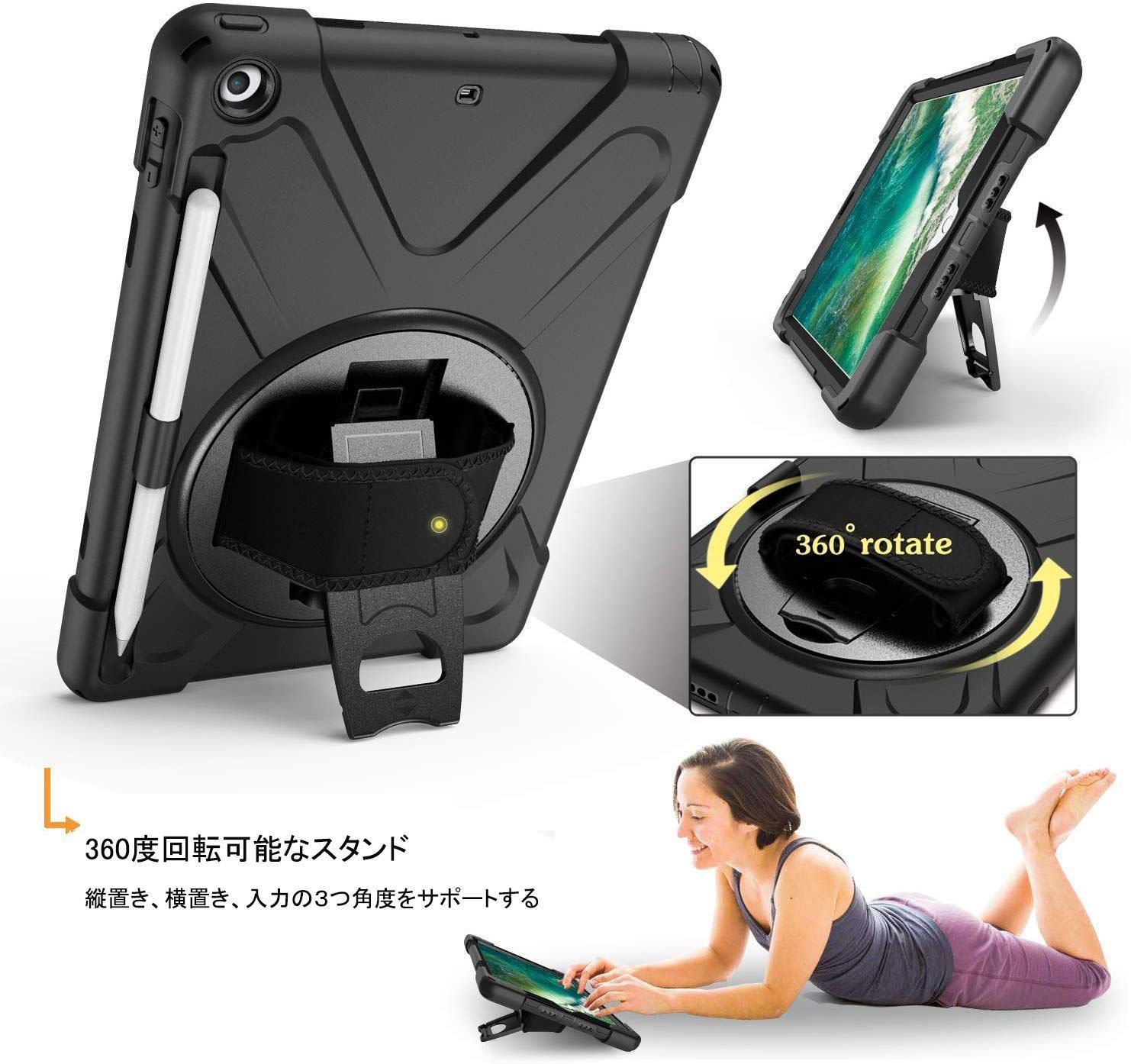 【新着商品】2017/2018 9.7 ケース カバー 第5世代/第6世代 ペンホルダー ペン収納 Pencil収納 回転 耐衝撃 iPad 縦置き ハンドホルダー スタンド 丈夫 肩掛けーストラップ 現場 防塵 三層 Herize 子供 キッズ 持ち運び ア