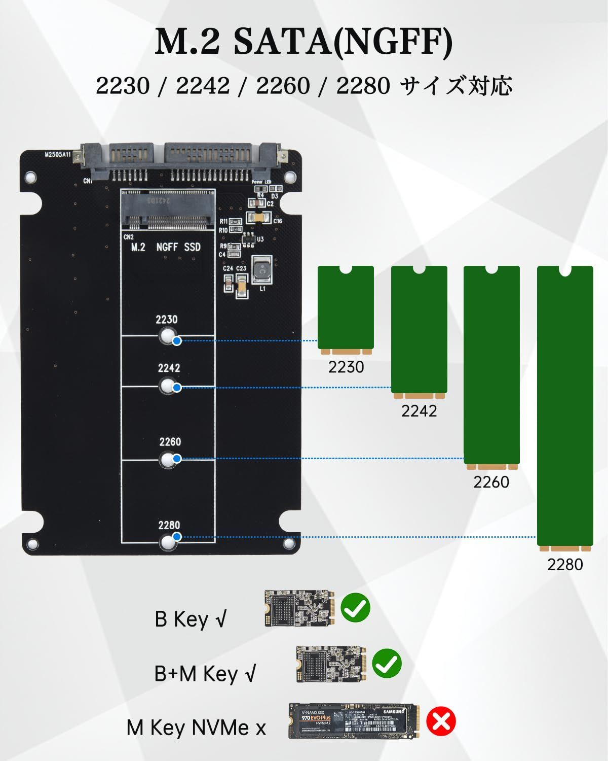 【大人気】ELUTENG M.2 SATA(NGFF) to SATA 3.0 変換 6Gbps 変換アダプター 外付きケース 2.5インチSATA 2230 / 2242 / 2260 / 2280 mm アルミ合金殻 高排熱性 M.2 SSD 外付きケース