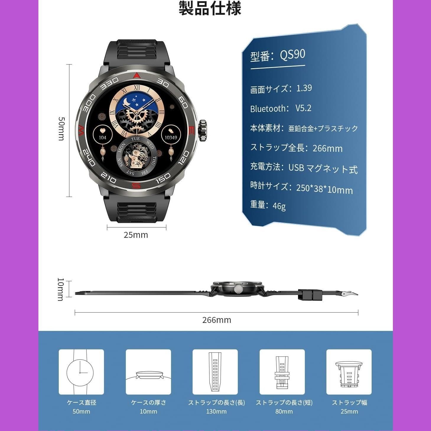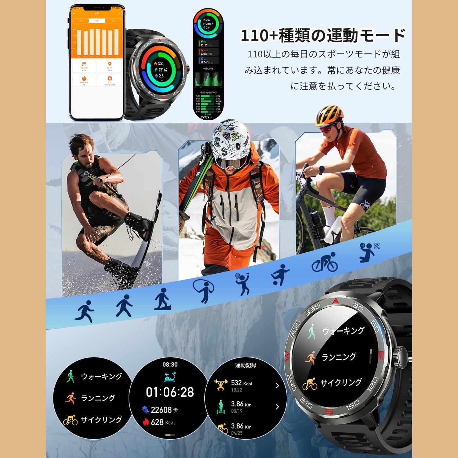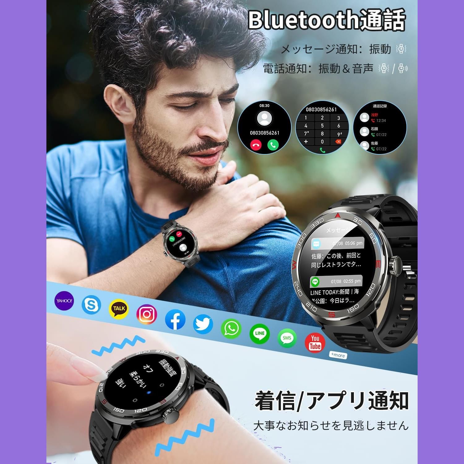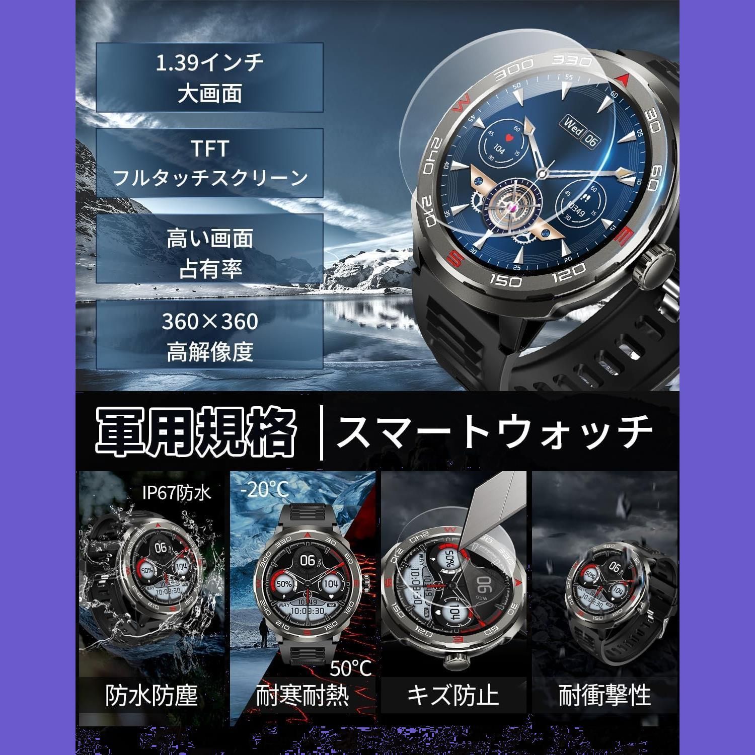 【在庫処分】スマートウォッチ 丸型 メンズ 1.39インチ大画面 軍用規格 スポーツウォッチ iphone対応 アンドロイド対応 通話機能付き 防水 防塵 耐衝撃 音声アシスタント smart watch 活動量計 110+種類運動モード 腕時計 日本語説明書