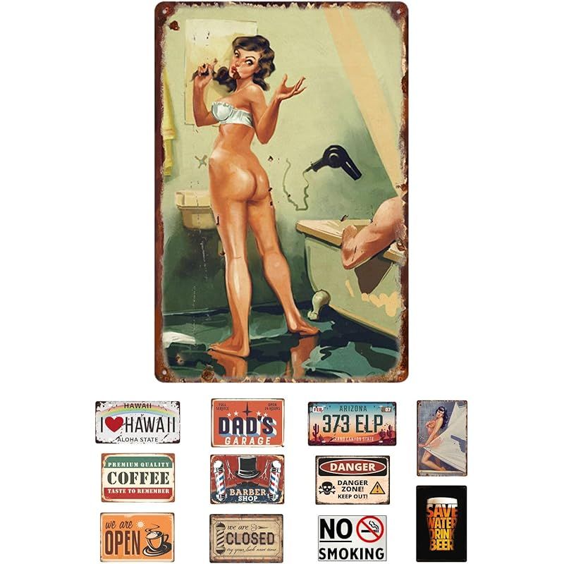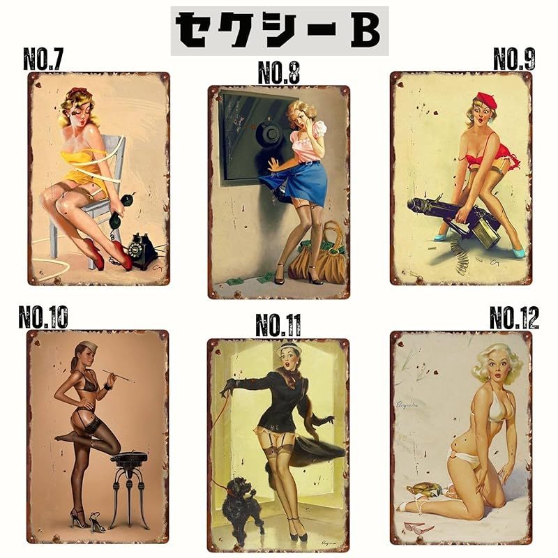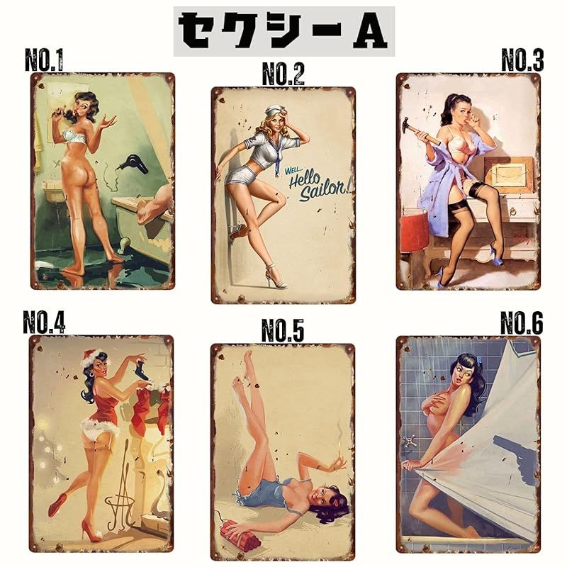 【新品】 レトリカン ブリキ看板 全120種類 アメリカン 雑貨 ナンバー プレート レトロ ガレージ 車 バイク アンティーク インテリア 昭和 ヴィンテージ (セクシー(各1枚), NO.1)