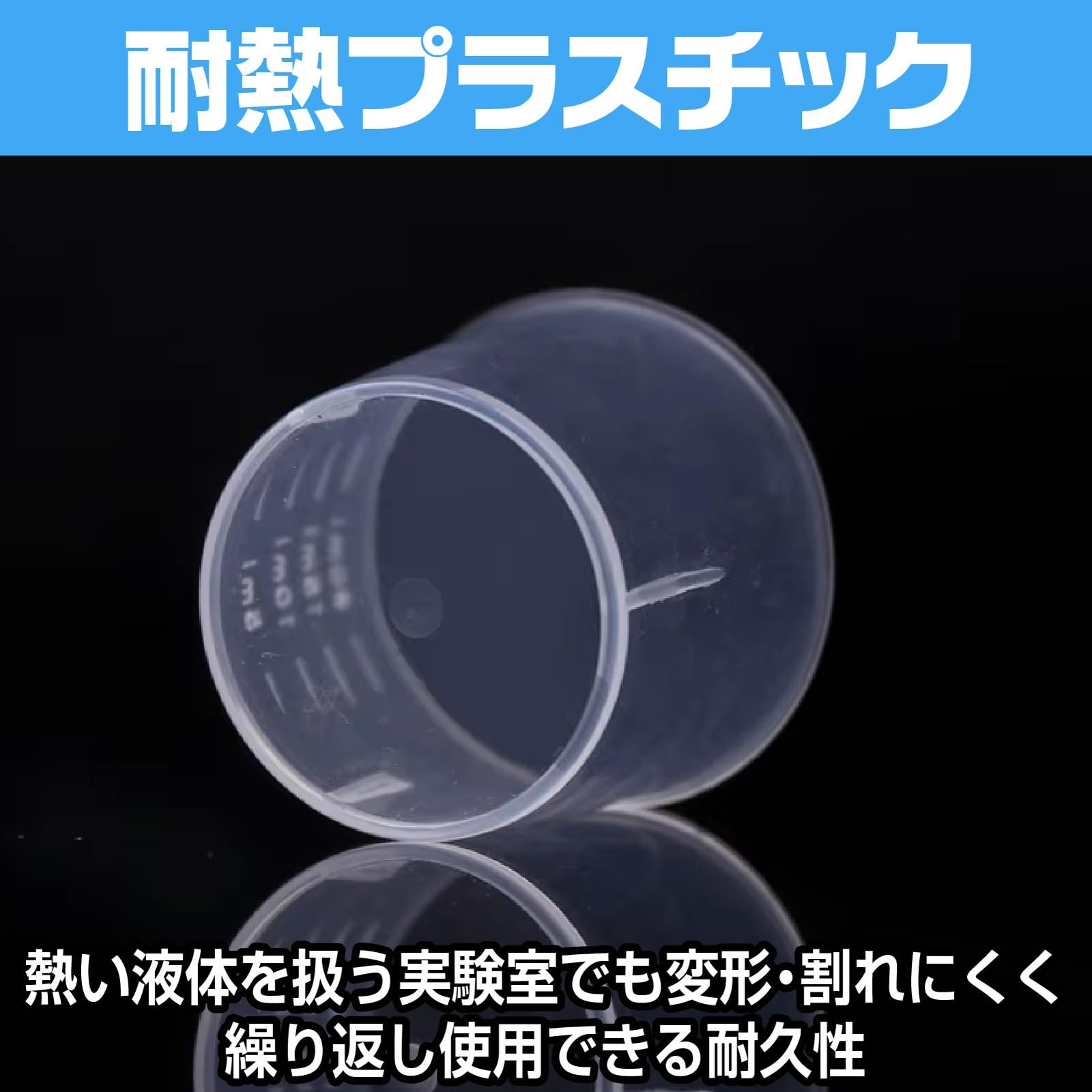 側面に読みやすい目盛り付きで、液体や粉末の計量が正確に行えます。教育現場や趣味の調合にも最適です。【安全性の高い素材を採用】