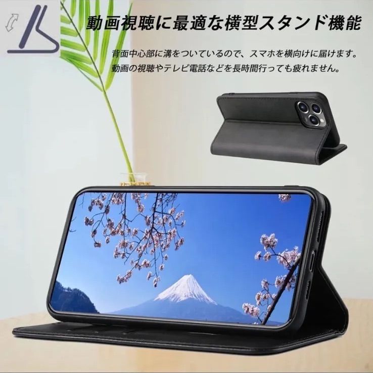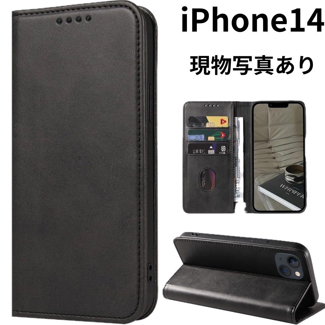 iPhone14ケース 手帳型 ブラック 黒色 スタンド機能 カード収納 携帯カバー アイフォン14 耐衝撃 落下防止 防塵 マグネット おしゃれ 人気 おすすめ シンプル アイフォーン14 b7