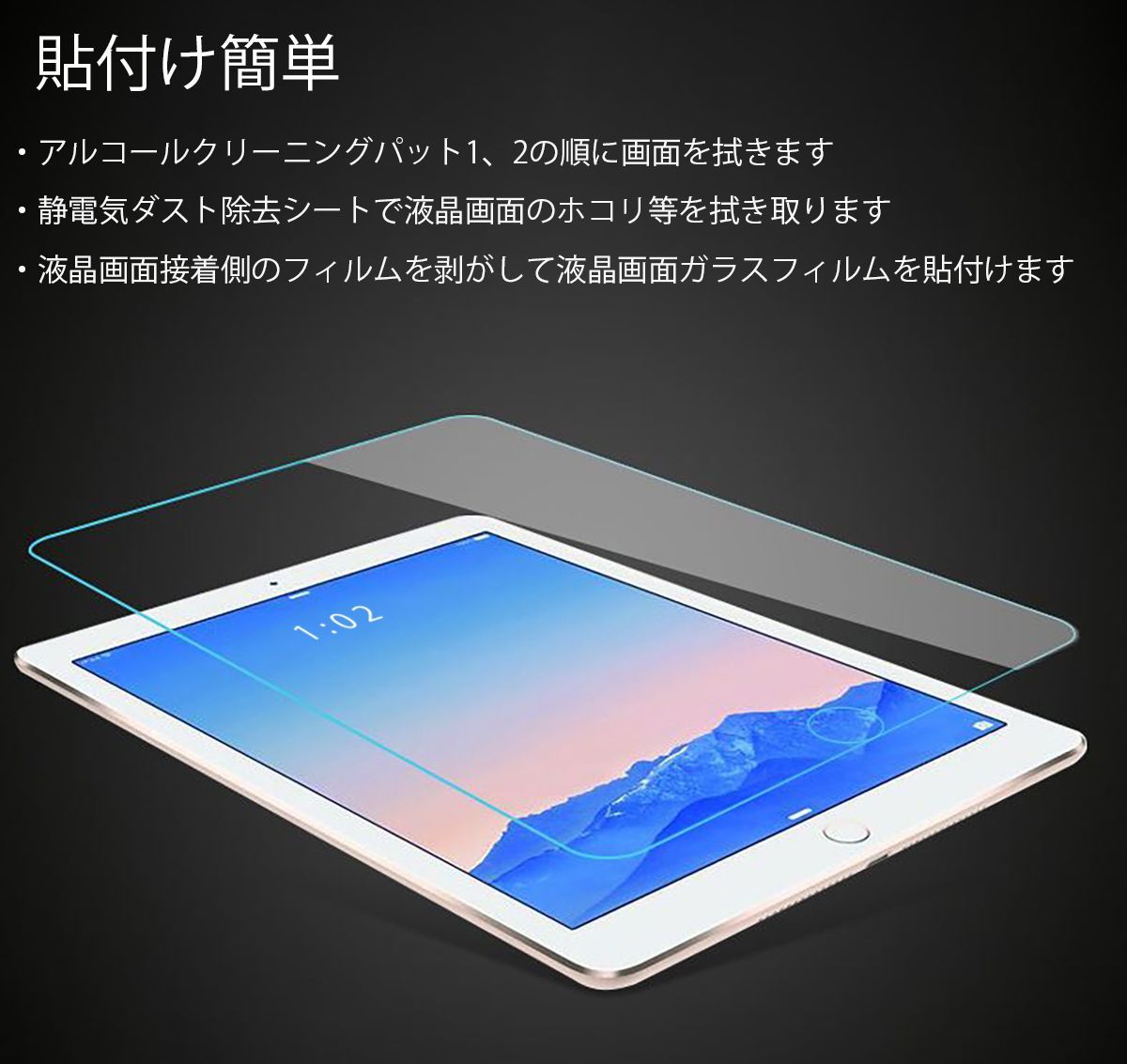 iPad Pro 9.7インチ A1673 A1674 保護フィルム アイパッドプロ 強化ガラスフィルム 強化ガラス ブルーライトカット 透明 9H 送料無料 安い