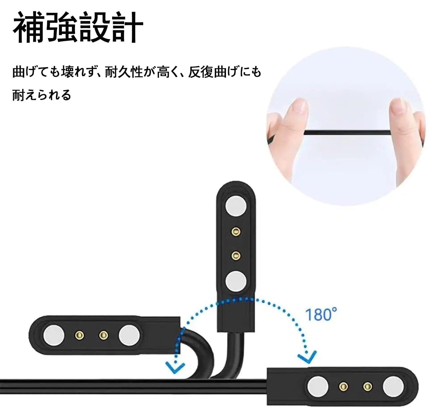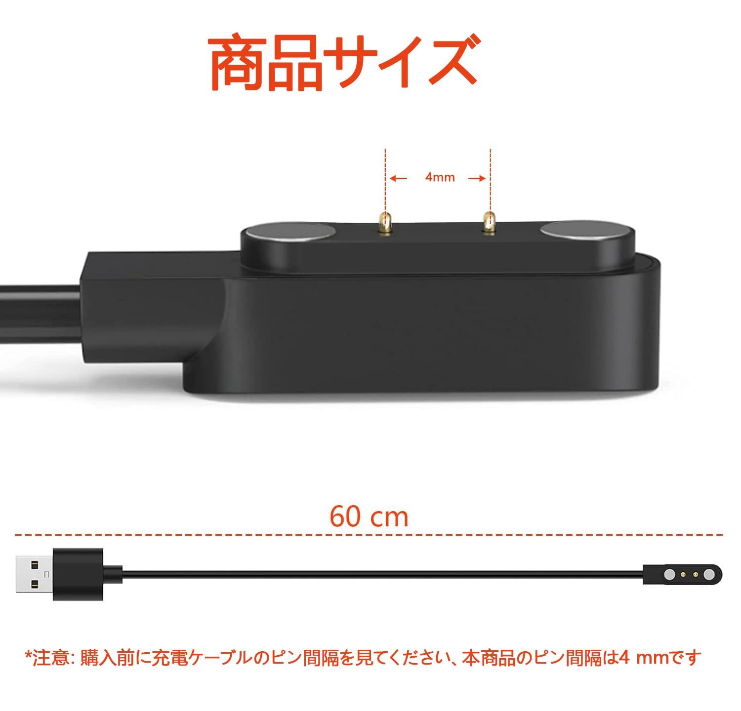 スマートウォッチ充電ケーブル 2ピンの距離は 4mm 対応 USB充電 0.6m SZSLマグネット充電コード USBケーブル USB充電 smart watch スマートウォッチコード 磁気吸着 高耐久 断線防止 軽量【1本セット】